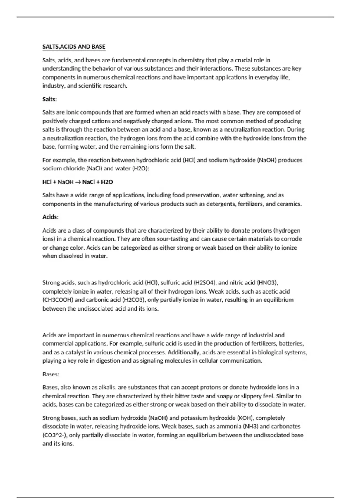 SALTS,ACIDS AND BASE