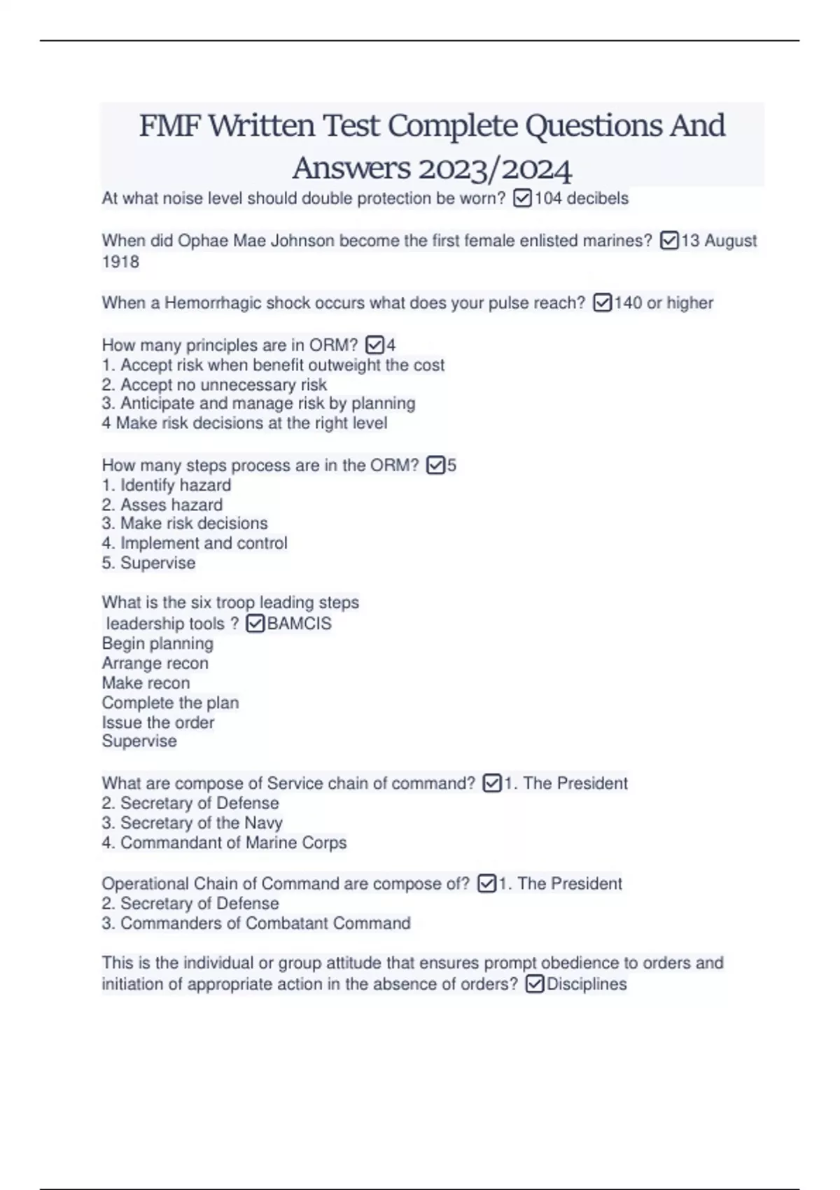 FMF Written Test Complete Questions And Answers 2023/2024 FMF Written Test Complete Questions And Answers 2023/2024