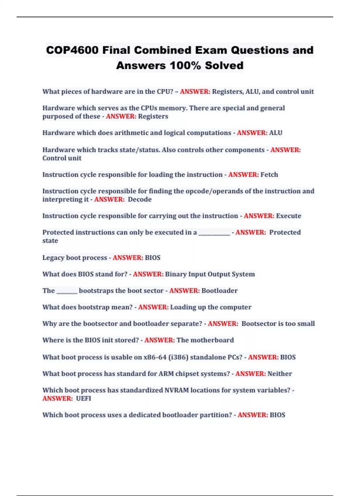 COP4600 Final Combined Exam Questions and Answers 100% Solved