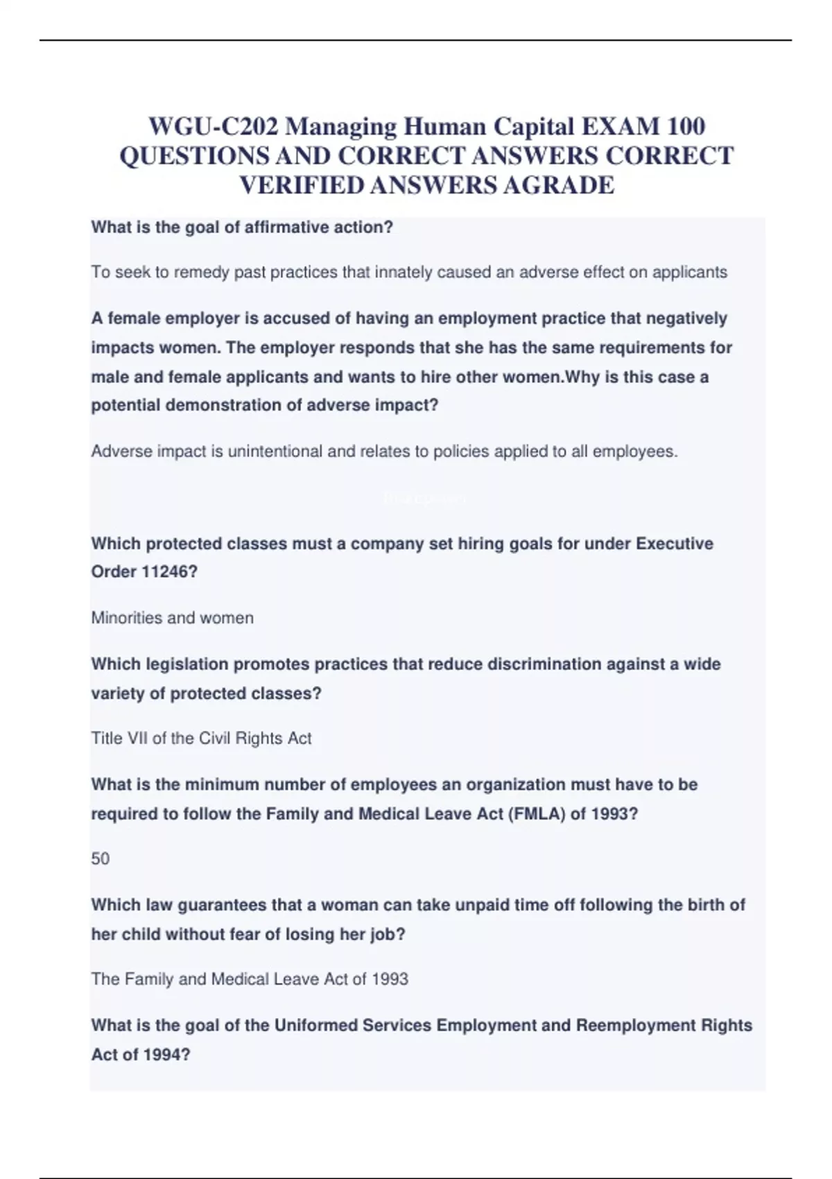 WGU-C202 Managing Human Capital EXAM 100 QUESTIONS AND CORRECT ANSWERS| AGRADE