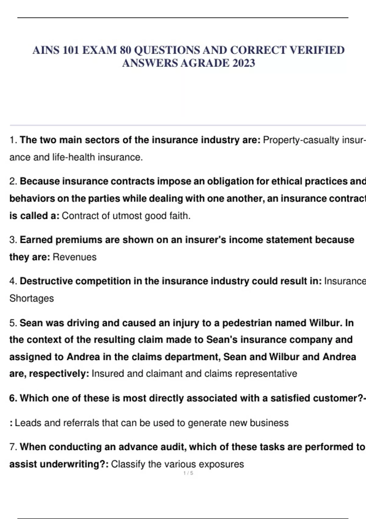 AINS 101 EXAM 80+ QUESTIONS AND CORRECT VERIFIED ANSWERS AGRADE 2023