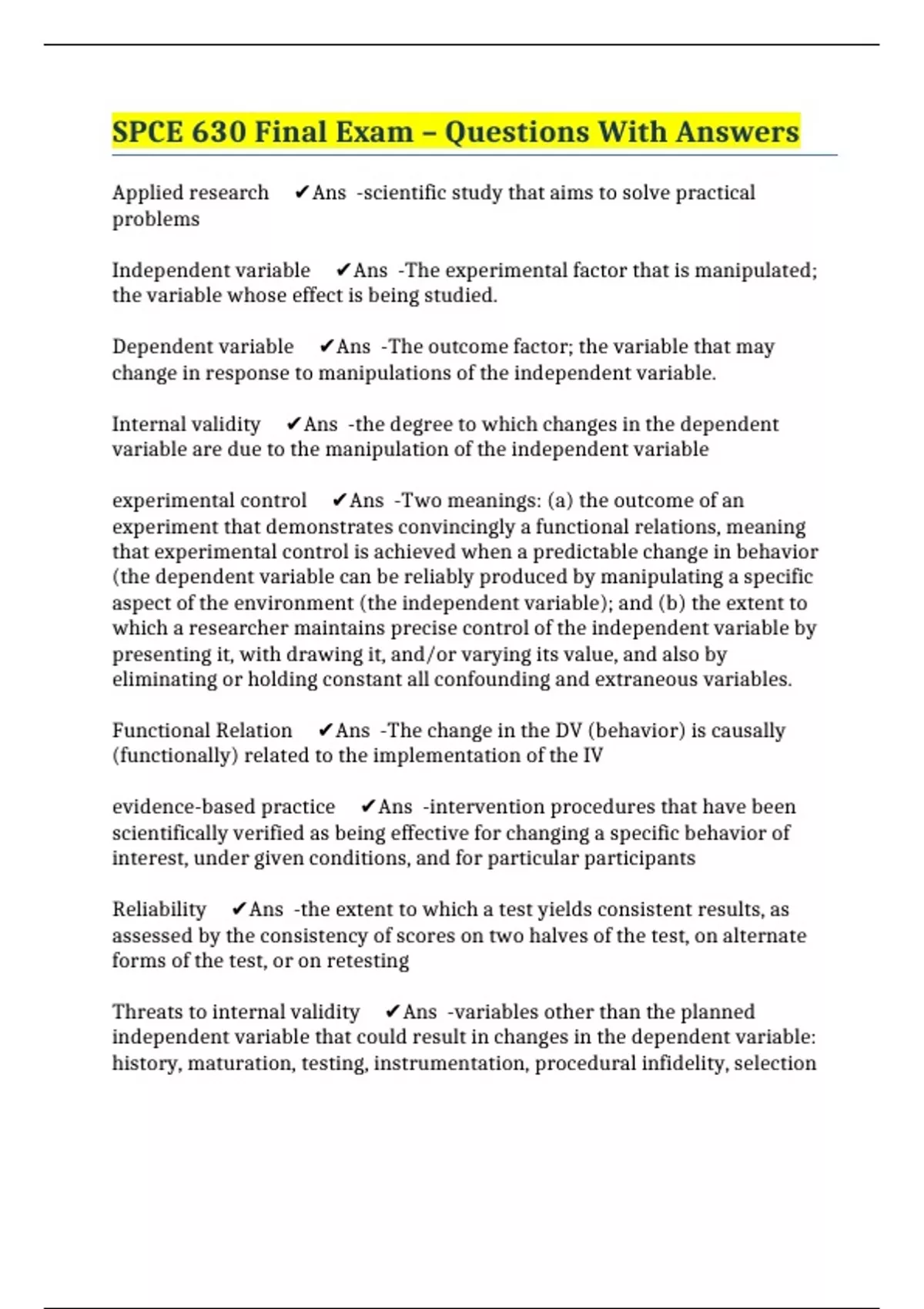 spce 630 final exam questions with answers
