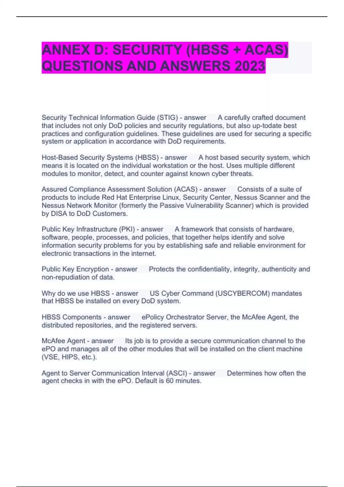 ANNEX D: SECURITY (HBSS + ACAS) QUESTIONS AND ANSWERS 2023