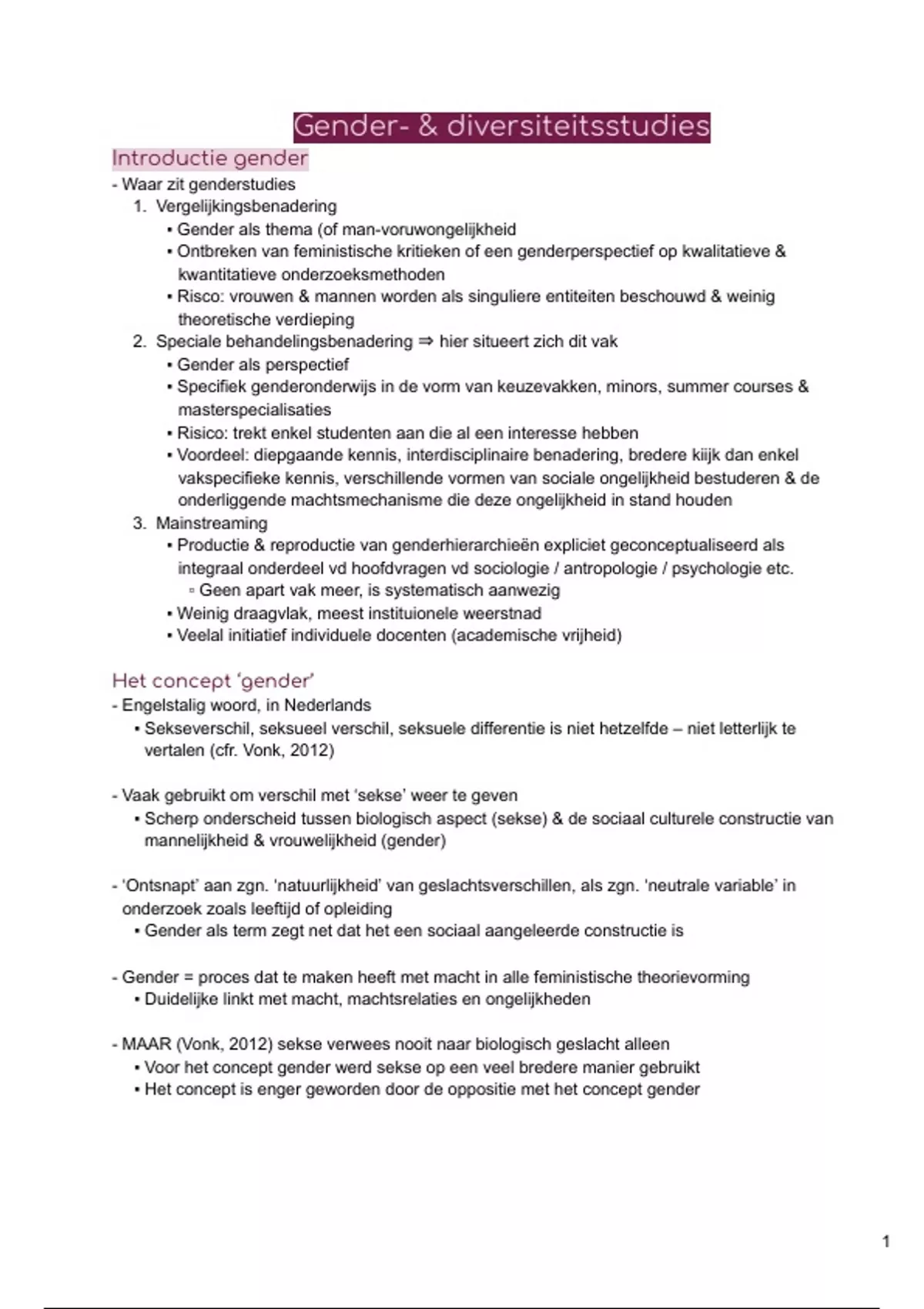 ▪ Gender verwijst naar de sociale en psychologische componenten van wat vroeger