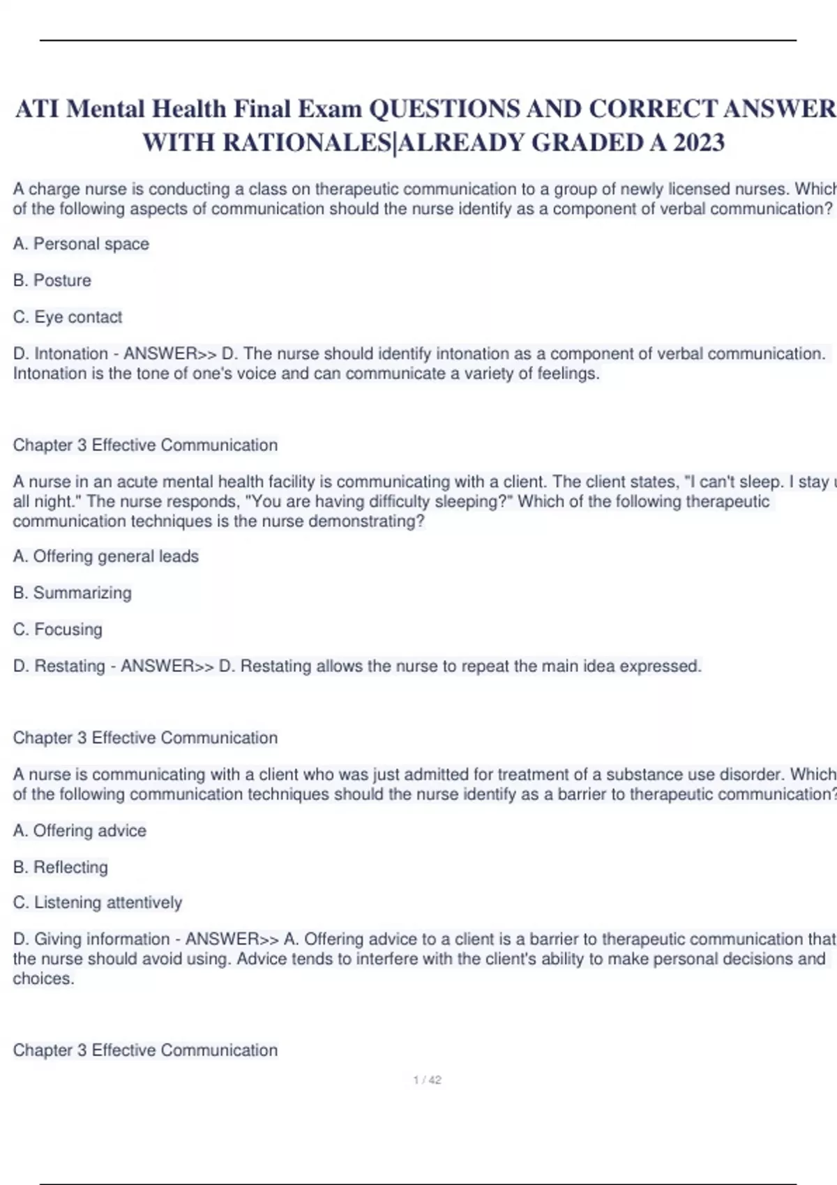 ATI Mental Health Final Exam QUESTIONS AND CORRECT ANSWERS WITH RATIONALES ALREADY GRADED A