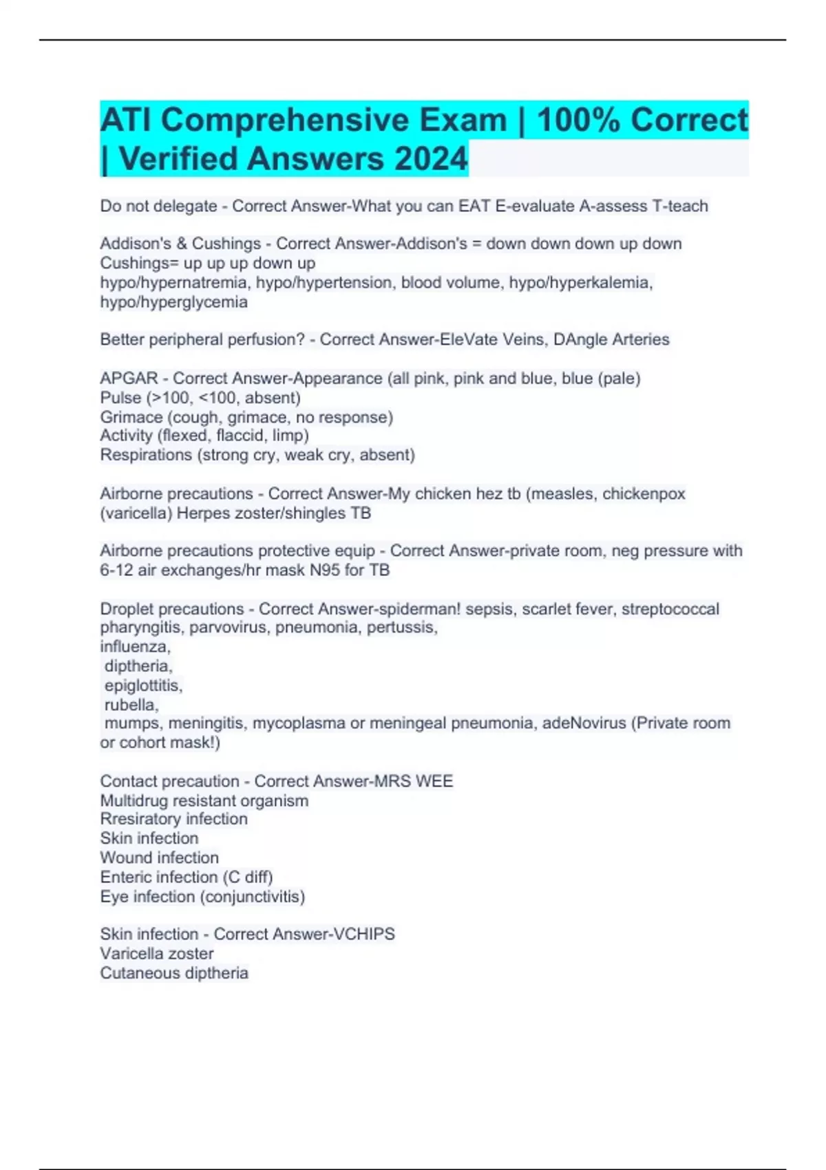ati comprehensive exam 100 correct verified a