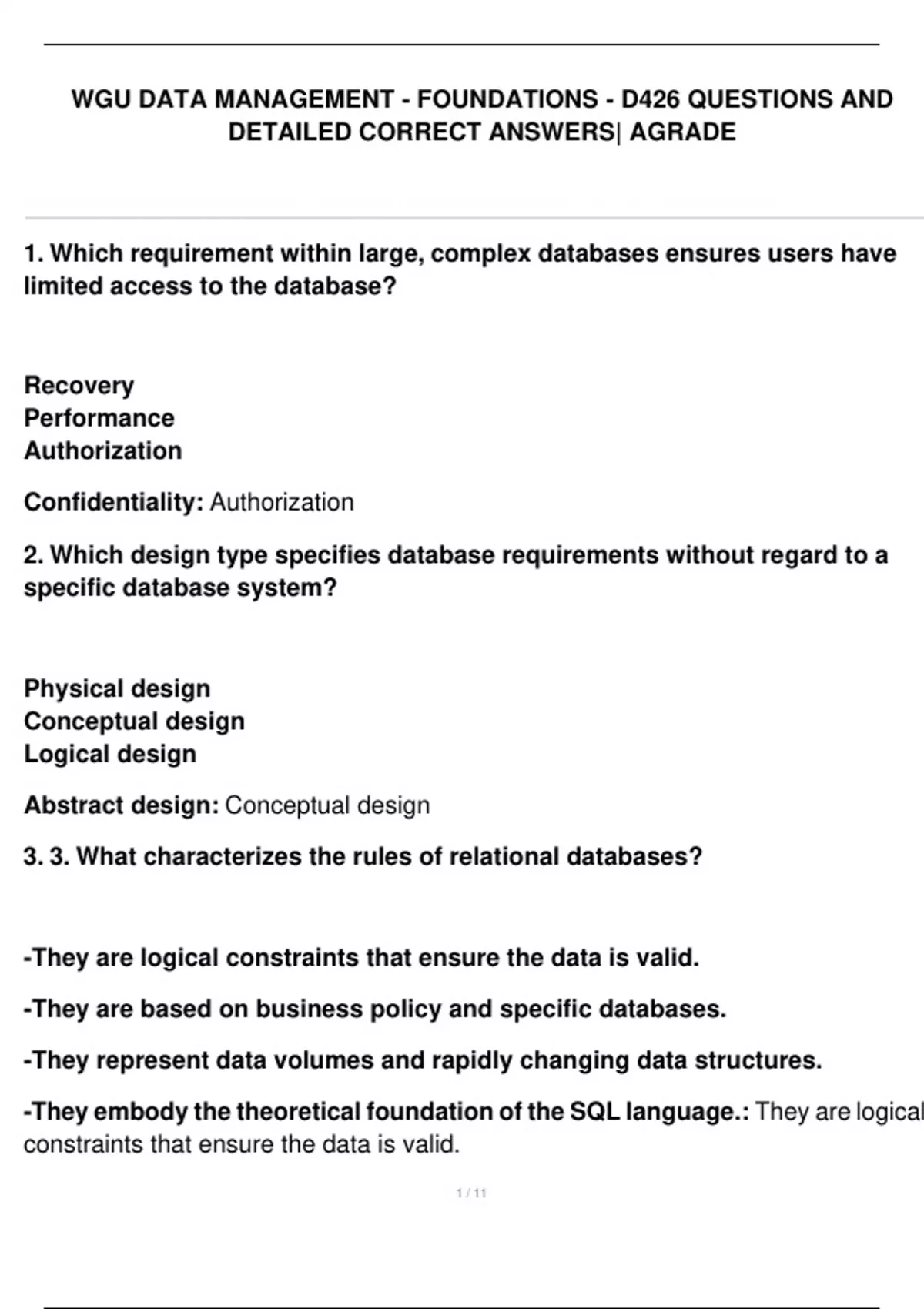 WGU DATA MANAGEMENT - FOUNDATIONS - D426 QUESTIONS AND DETAILED CORRECT ANSWERS