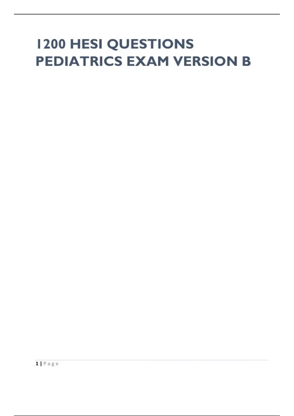 1200 HESI QUESTIONS PEDIATRICS EXAM VERSION B
