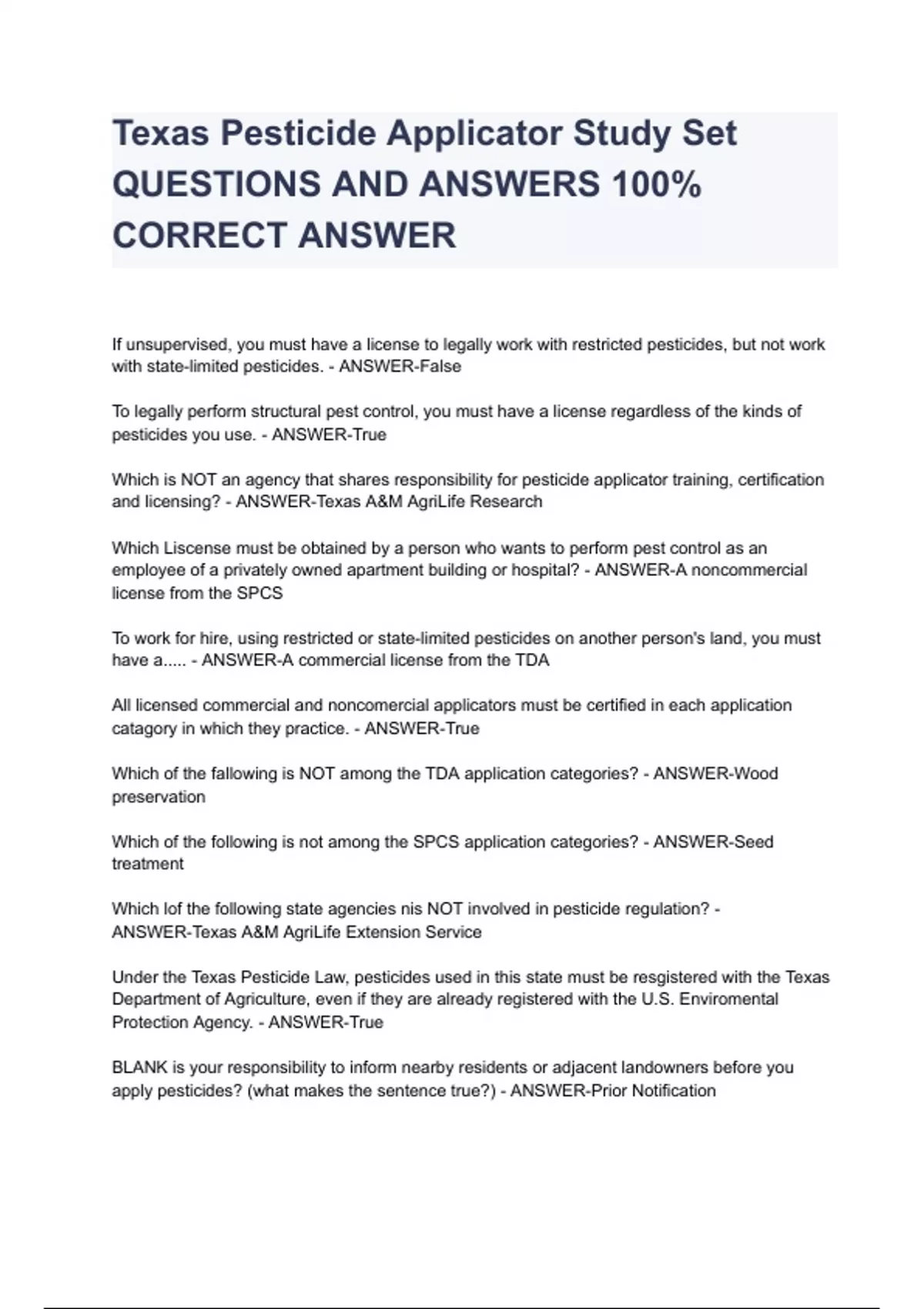Texas Pesticide Applicator Study Set QUESTIONS AND ANSWERS 100% CORRECT ANSWER