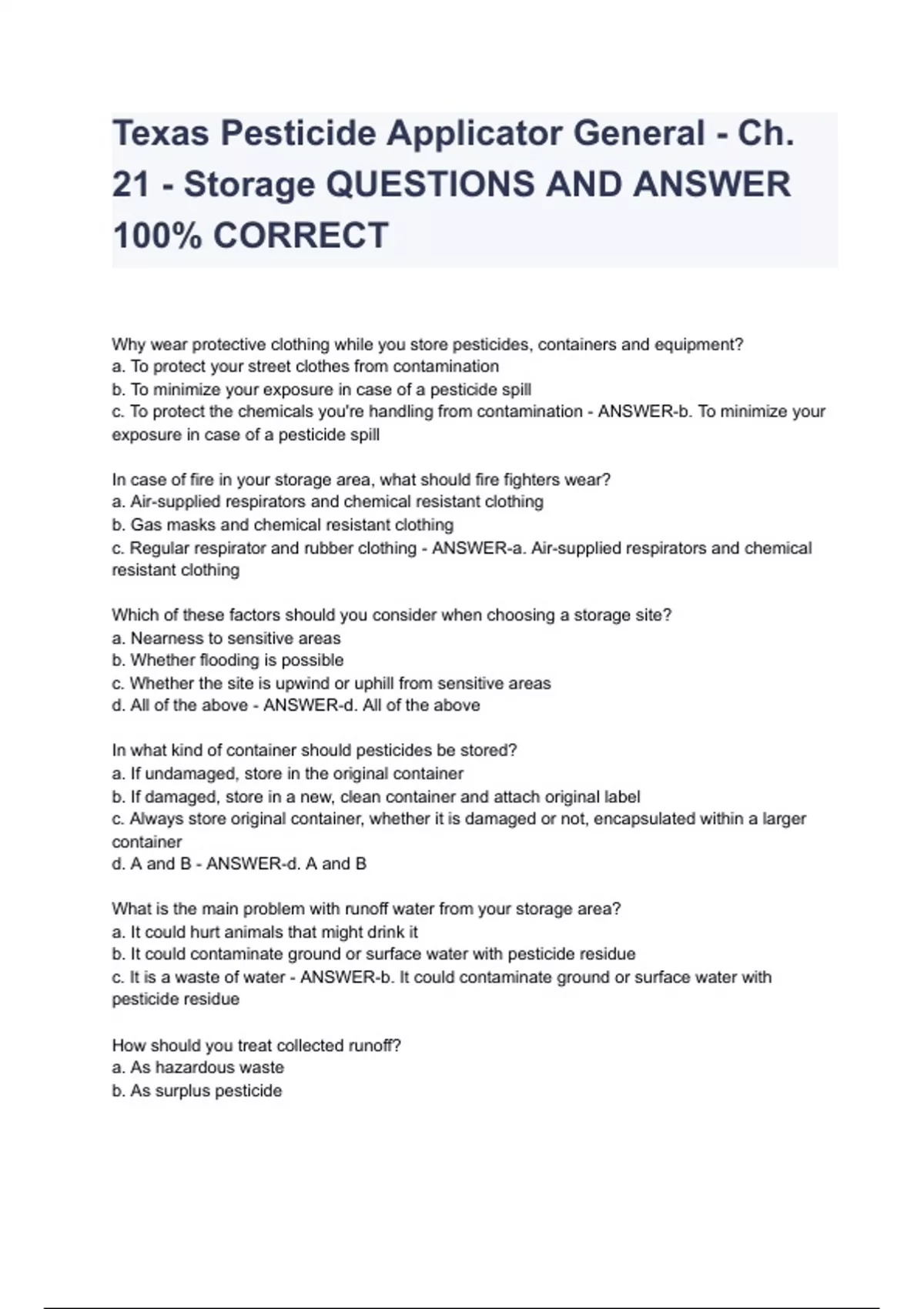 Texas Pesticide Applicator General - Ch. 21 - Storage QUESTIONS AND ANSWER 100% CORRECT