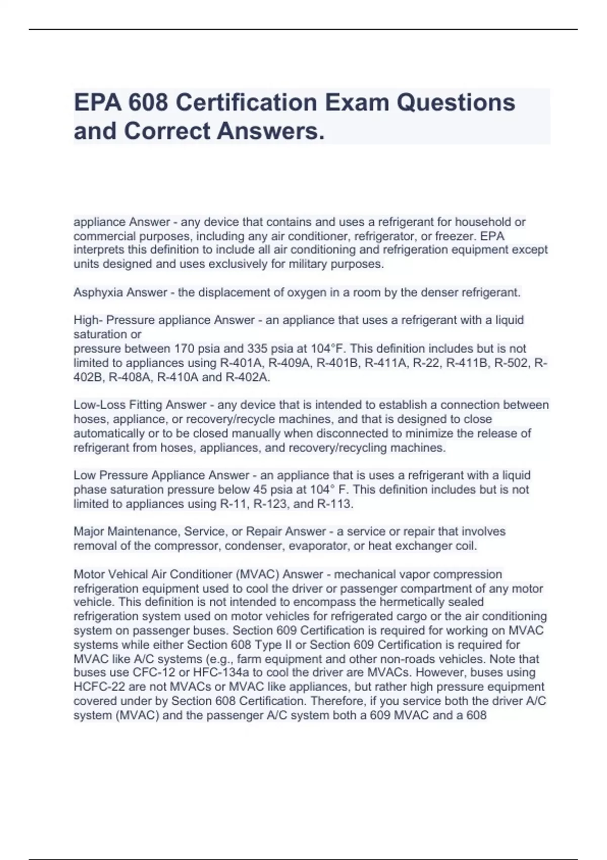 EPA 608 Certification Exam Questions and Correct Answers.