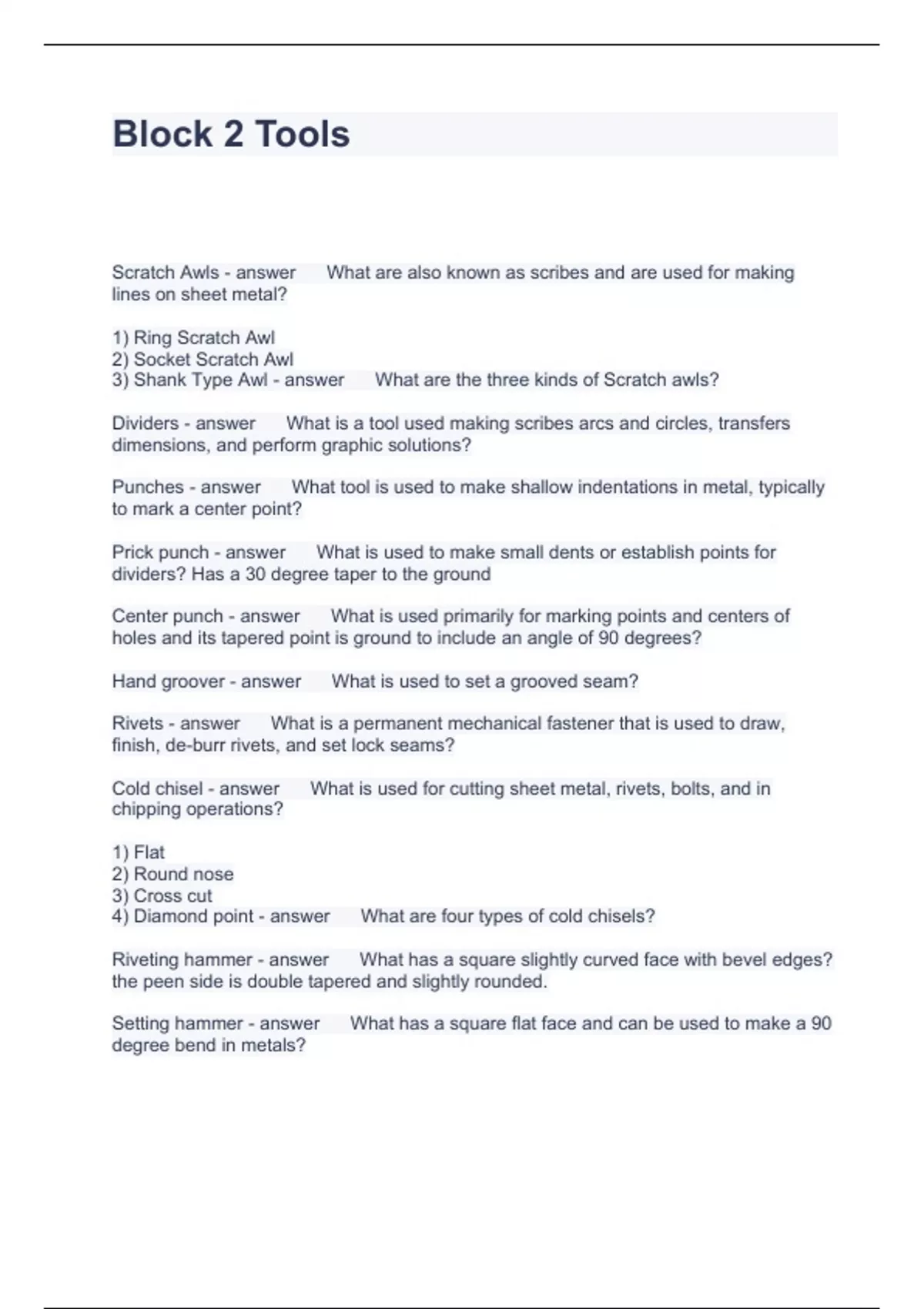 Block 2 Tools Questions and Answers 2023