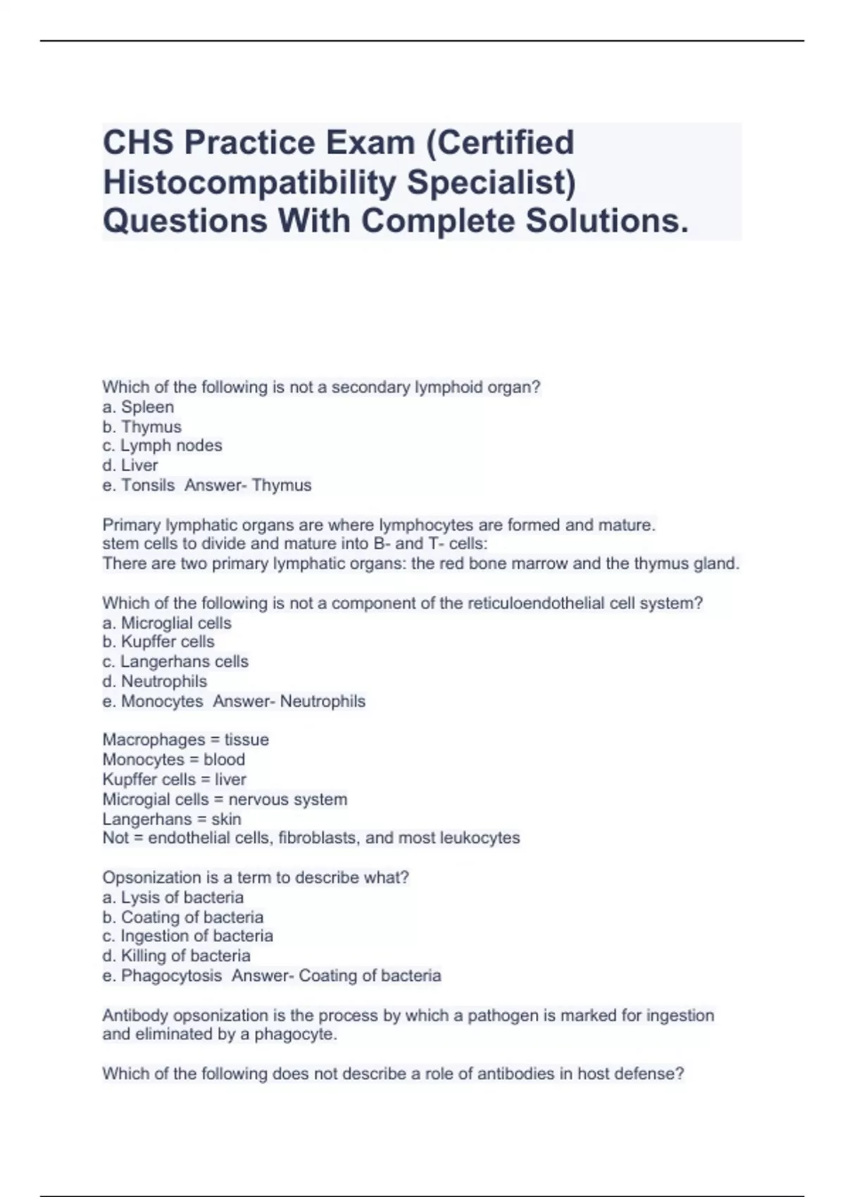 CHS Practice Exam (Certified Histocompatibility Specialist) Questions With Complete Solutions.