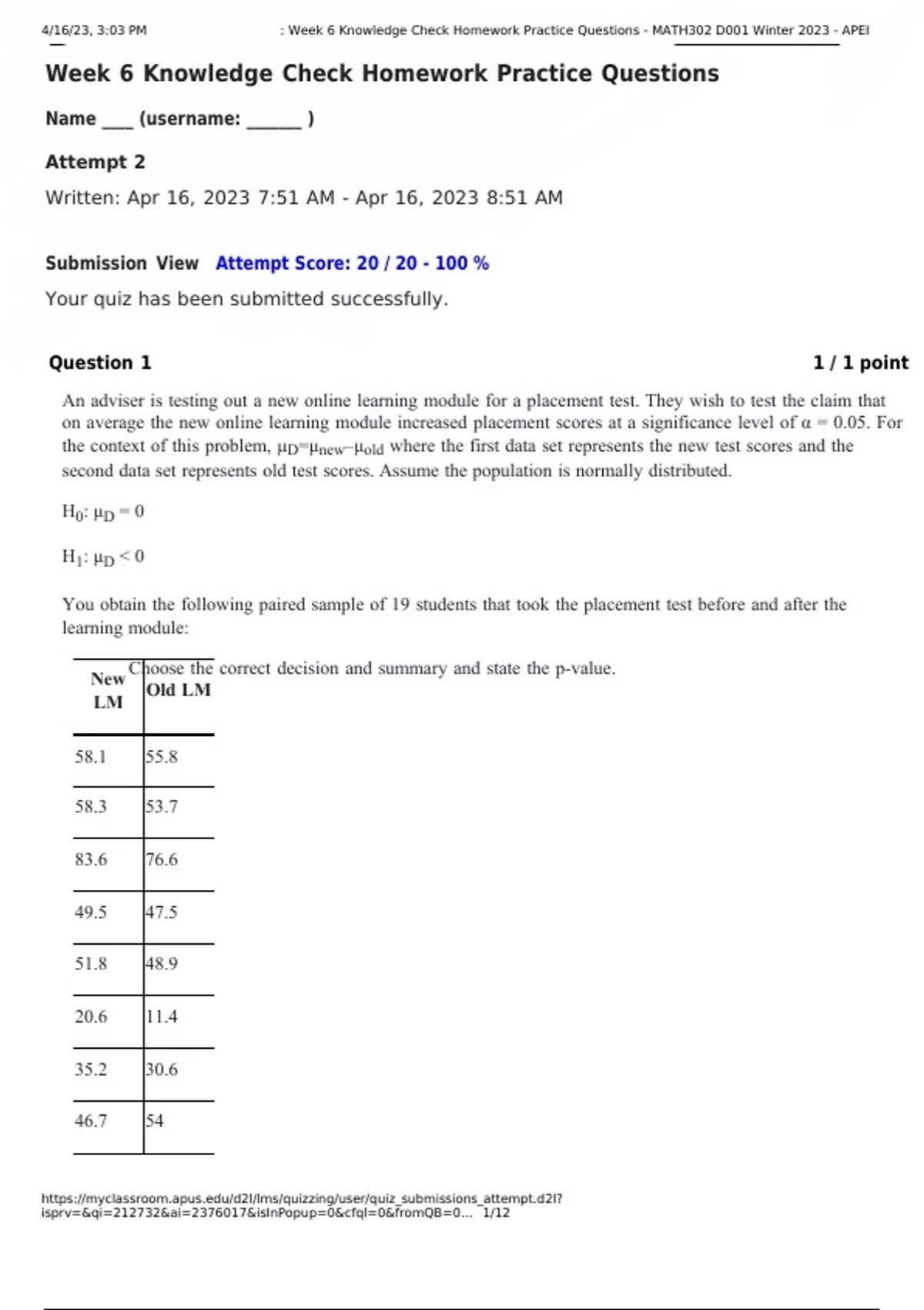 MATH302 Week 6 Knowledge Check Homework Practice Questions