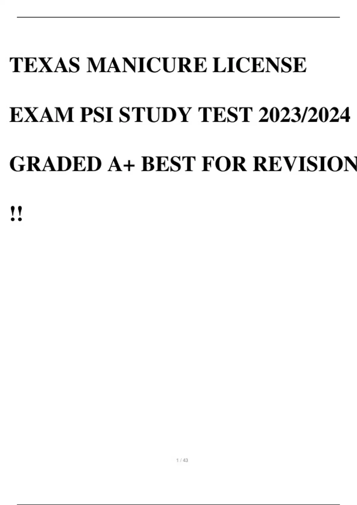 TEXAS MANICURE LICENSE EXAM PSI STUDY TEST 2023