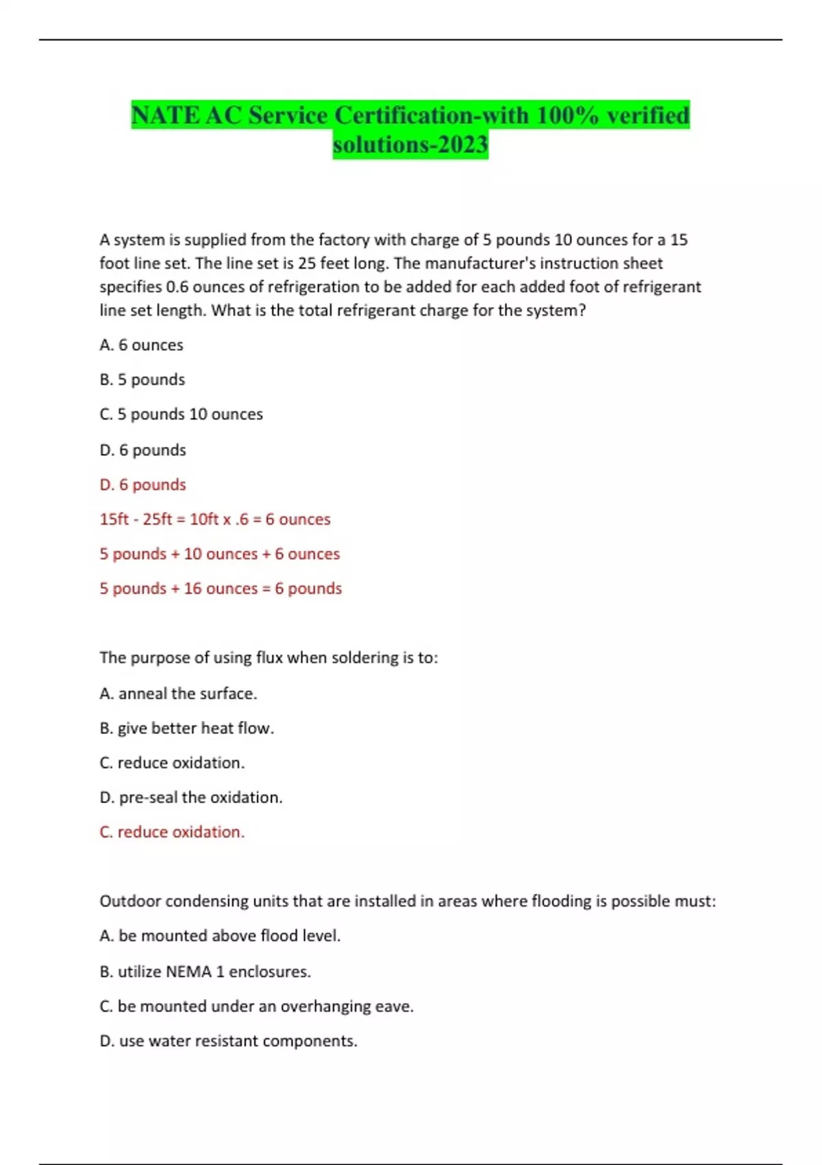 NATE AC Service Certification-with 100% verified solutions-2023