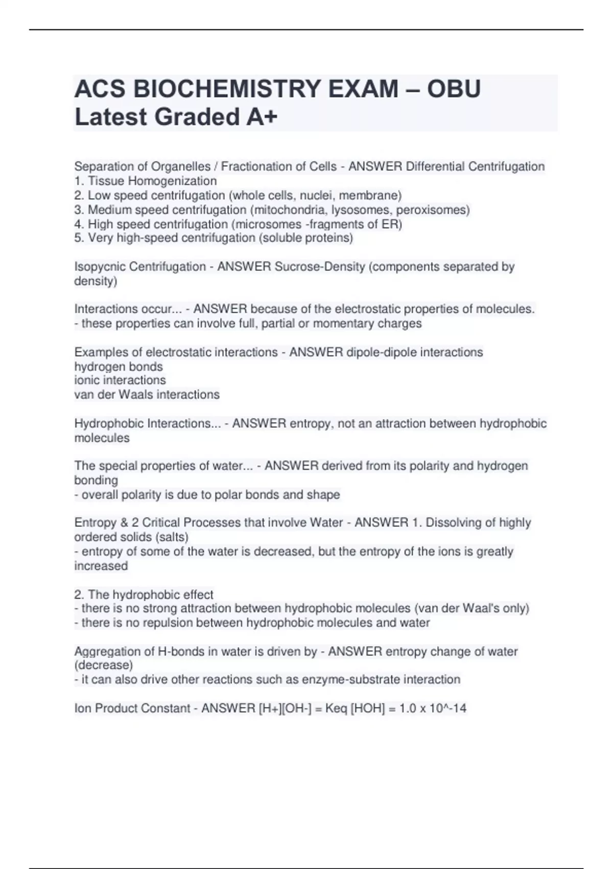 ACS BIOCHEMISTRY EXAM – OBU Questions and Answers Latest Graded A+