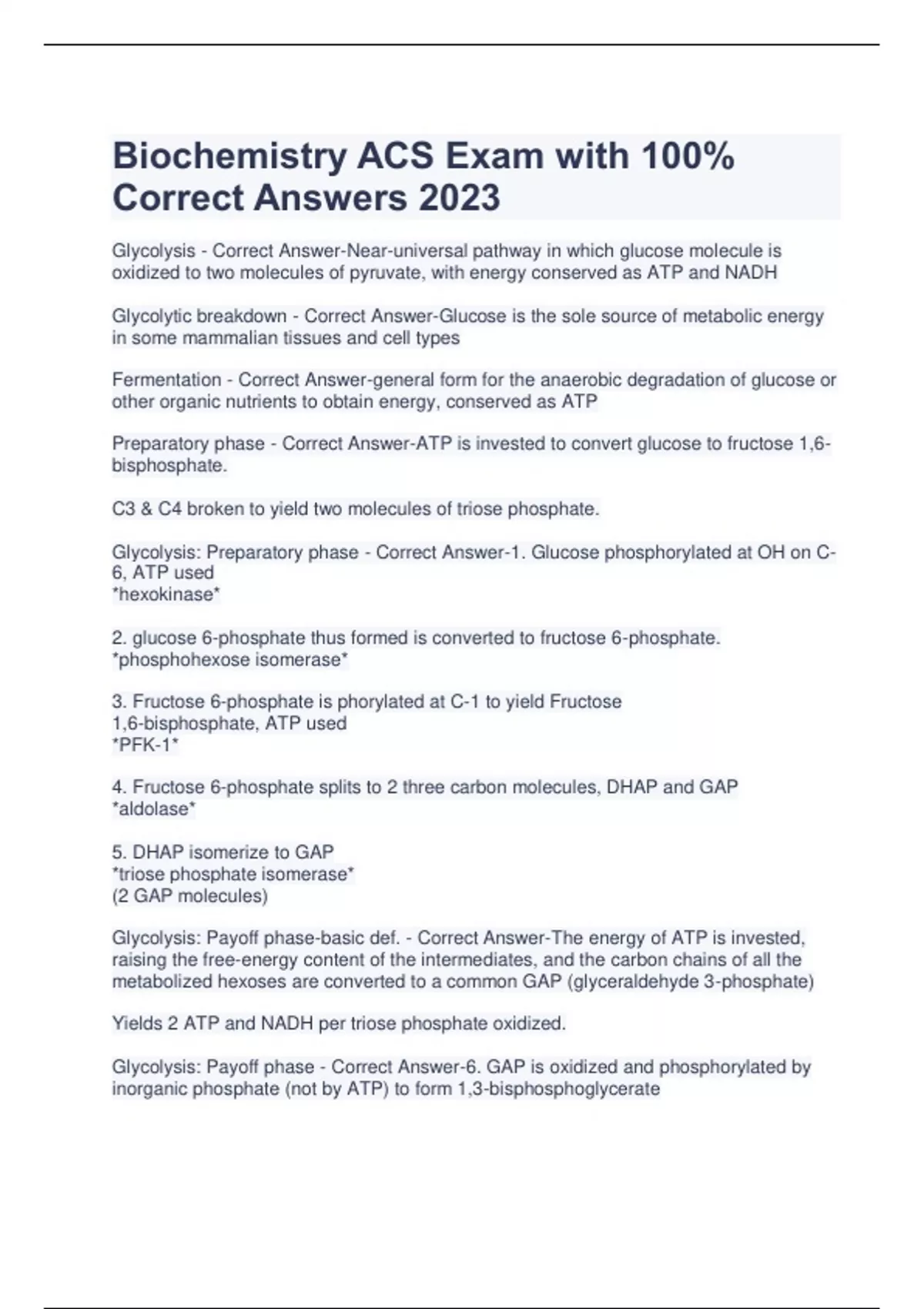 Biochemistry ACS Exam with 100% Correct Answers