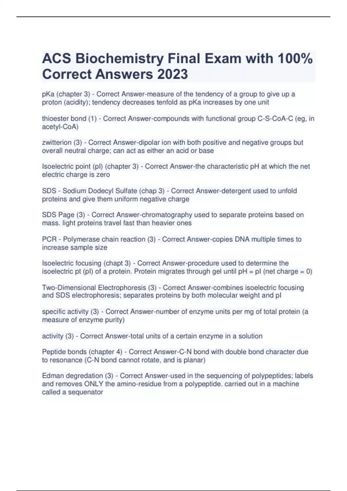 ACS Biochemistry Final Exam with 100% Correct Answers
