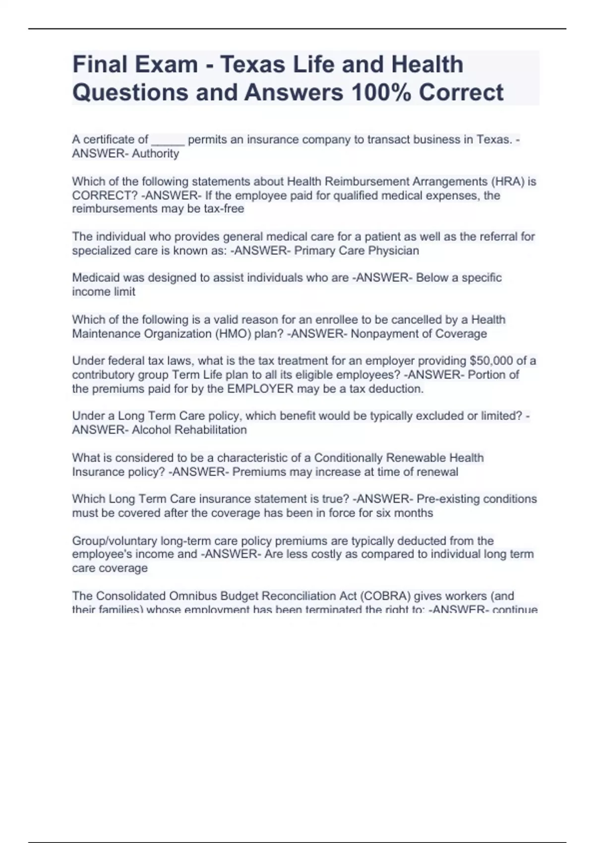 Questions and Answers 100% Correct