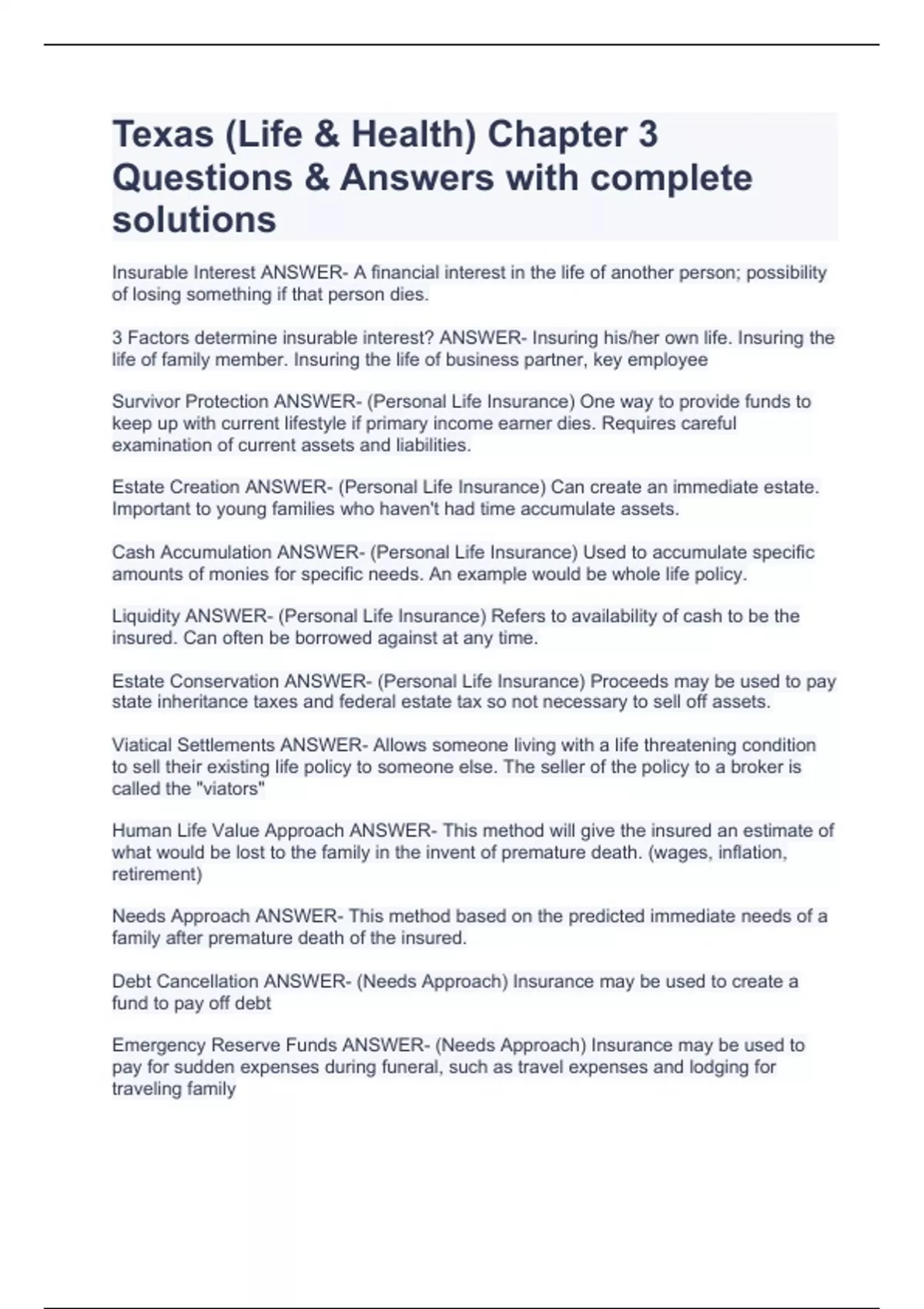 texas life health chapter 3 questions stuvia