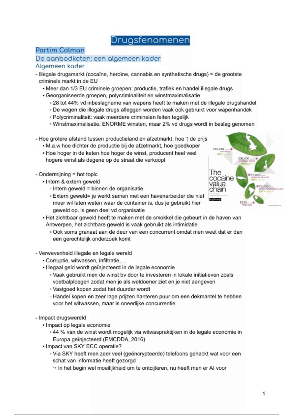 - Illegale drugsmarkt (cocaïne, heroïne, cannabis en synthetische drugs) = de grootste