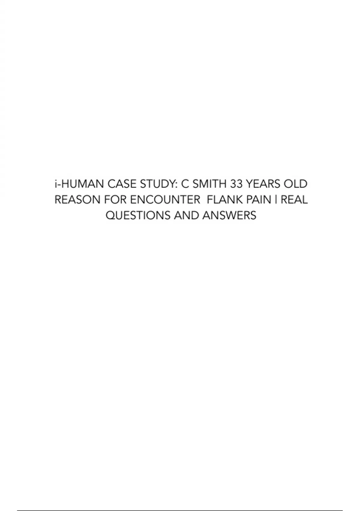 i-HUMAN CASE STUDY- C SMITH 33 YEARS OLD REASON FOR ENCOUNTER FLANK PAIN REAL QUESTIONS AND ANSWERS