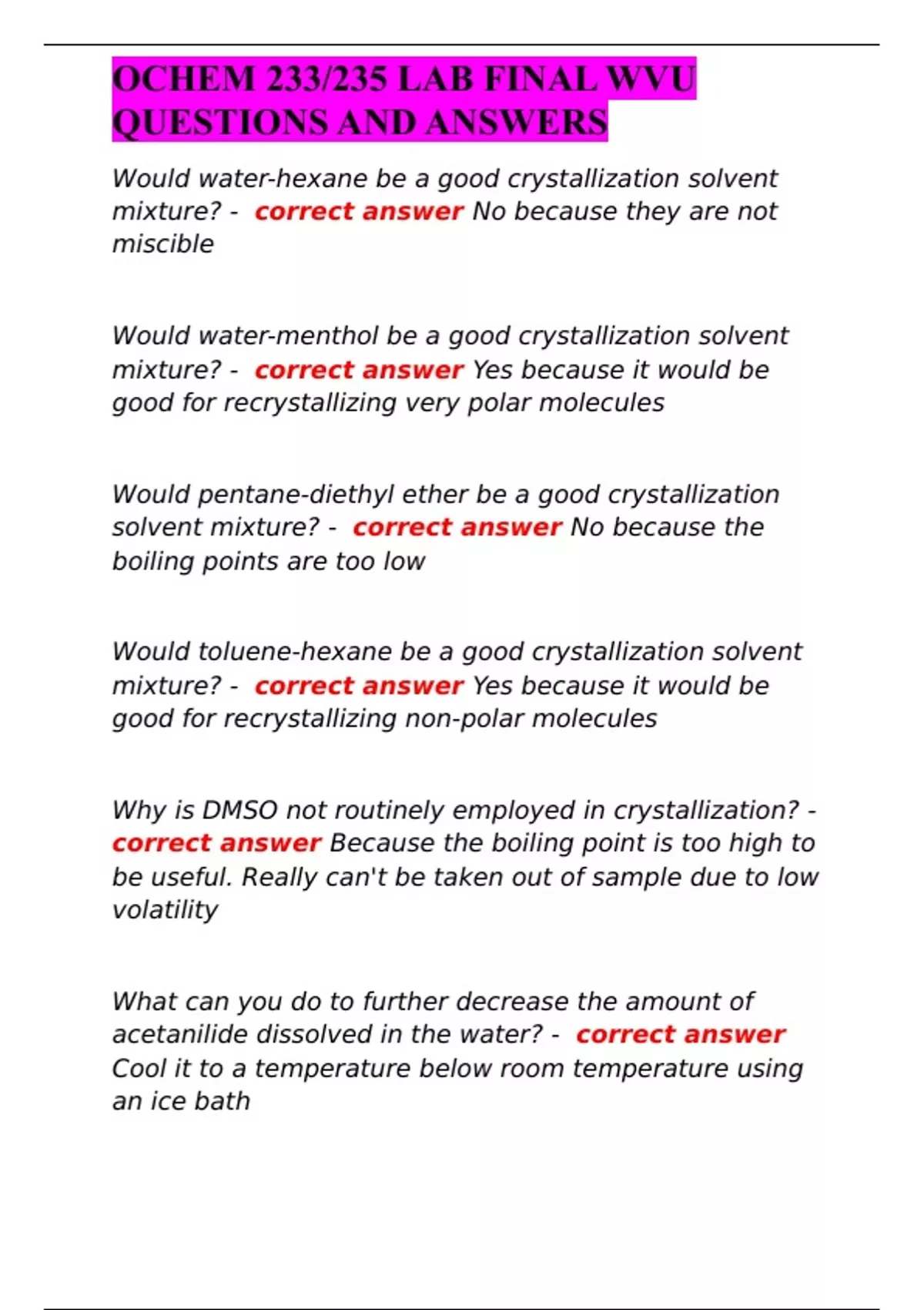 OCHEM 233/235 LAB FINAL WVU QUESTIONS AND ANSWERS
