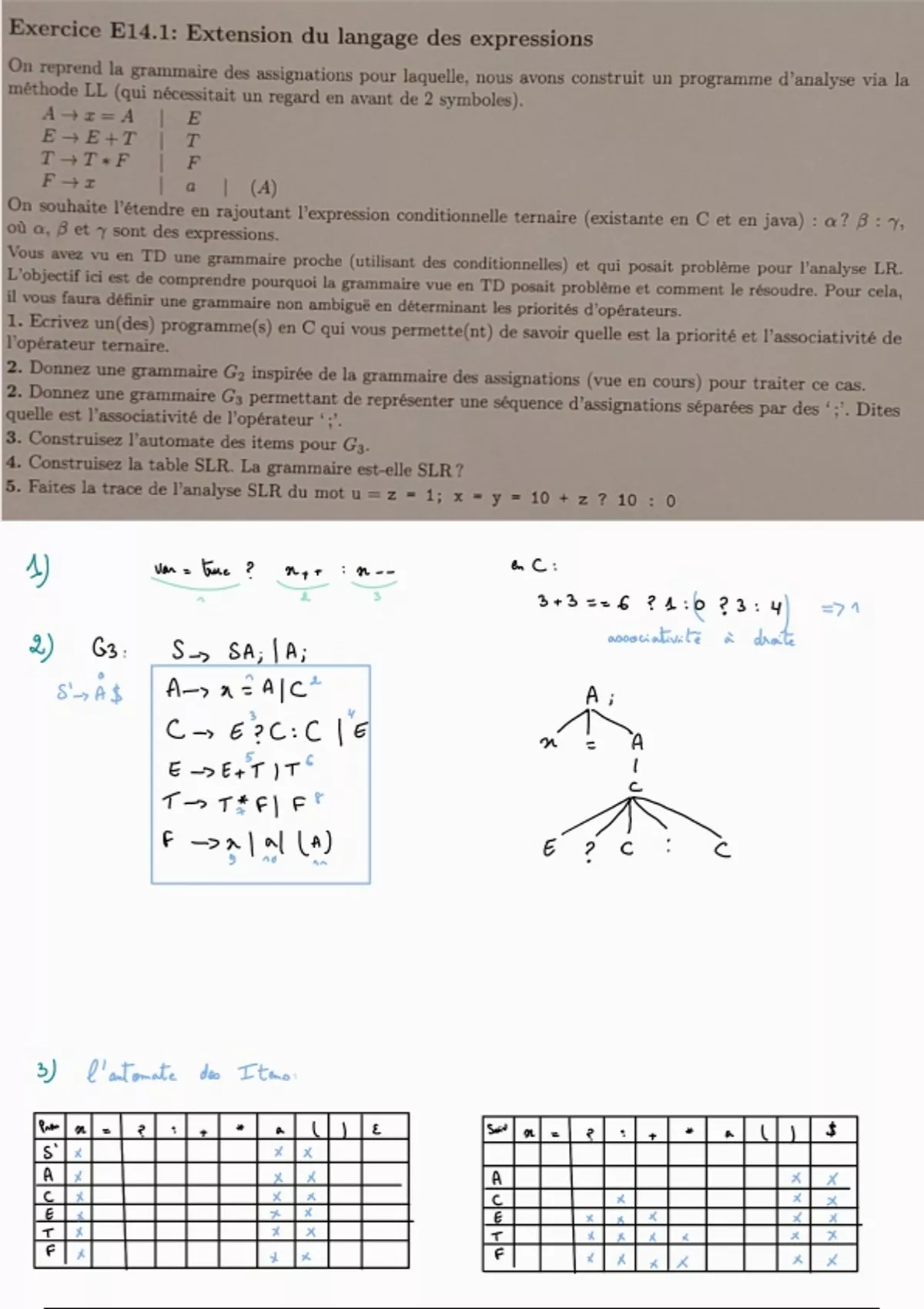 Résumé TD14 Analyse syntaxique analyse SLR corrige