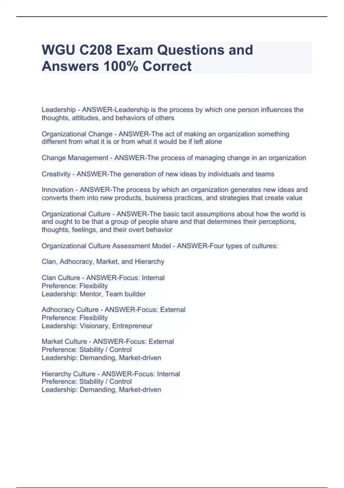 wgu c208 exam questions and answers 100 correct