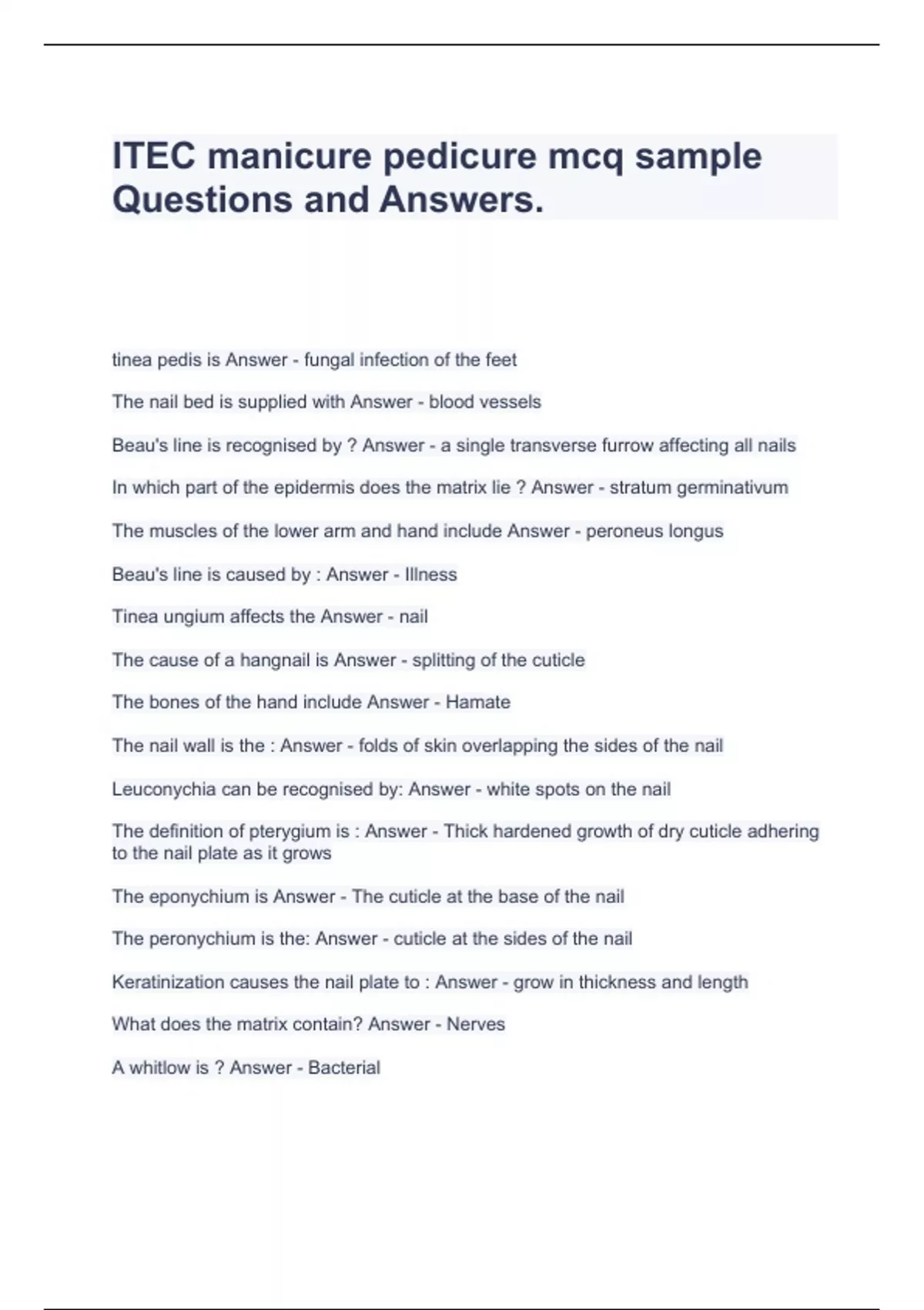 ITEC manicure pedicure mcq sample Questions and Answers.