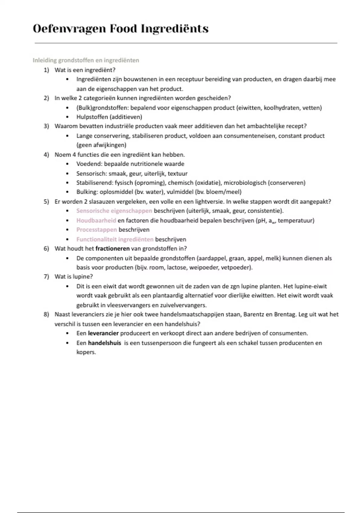 Oefenvragen Food Ingrediënts