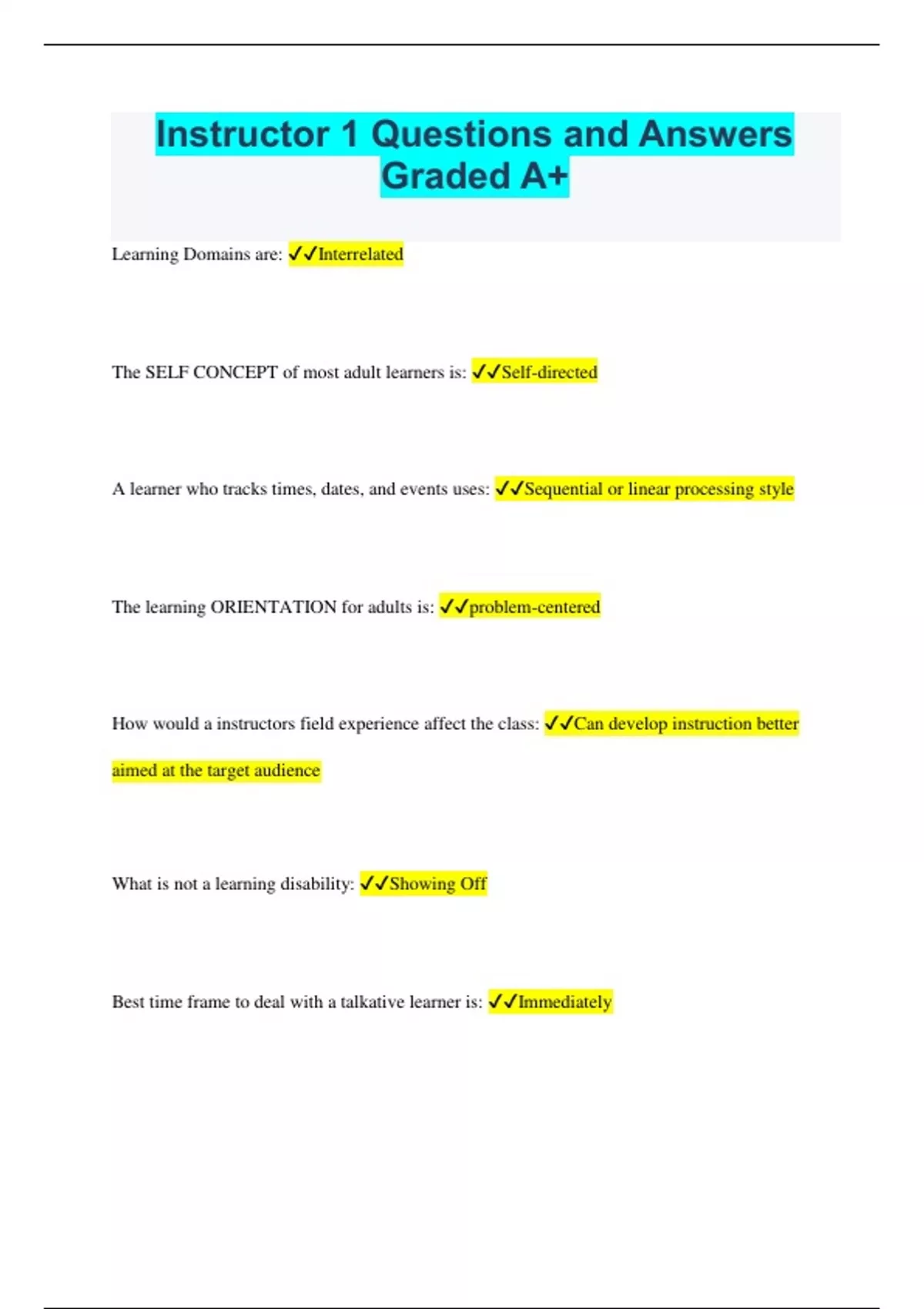 Instructor 1 Questions and Answers Graded A+