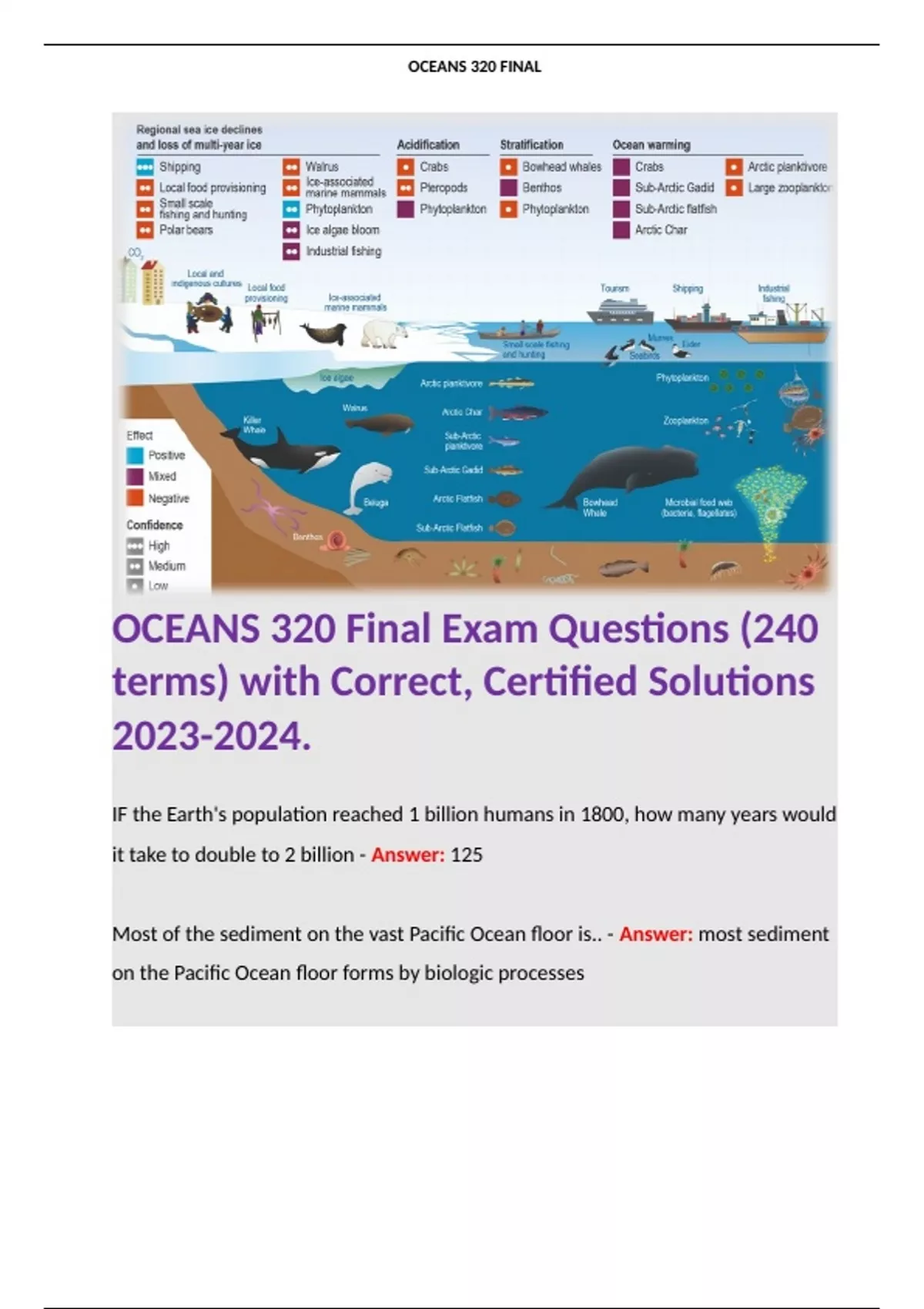 OCEANS 320 Final Exam Questions (240 terms) with Correct, Certified Solutions .