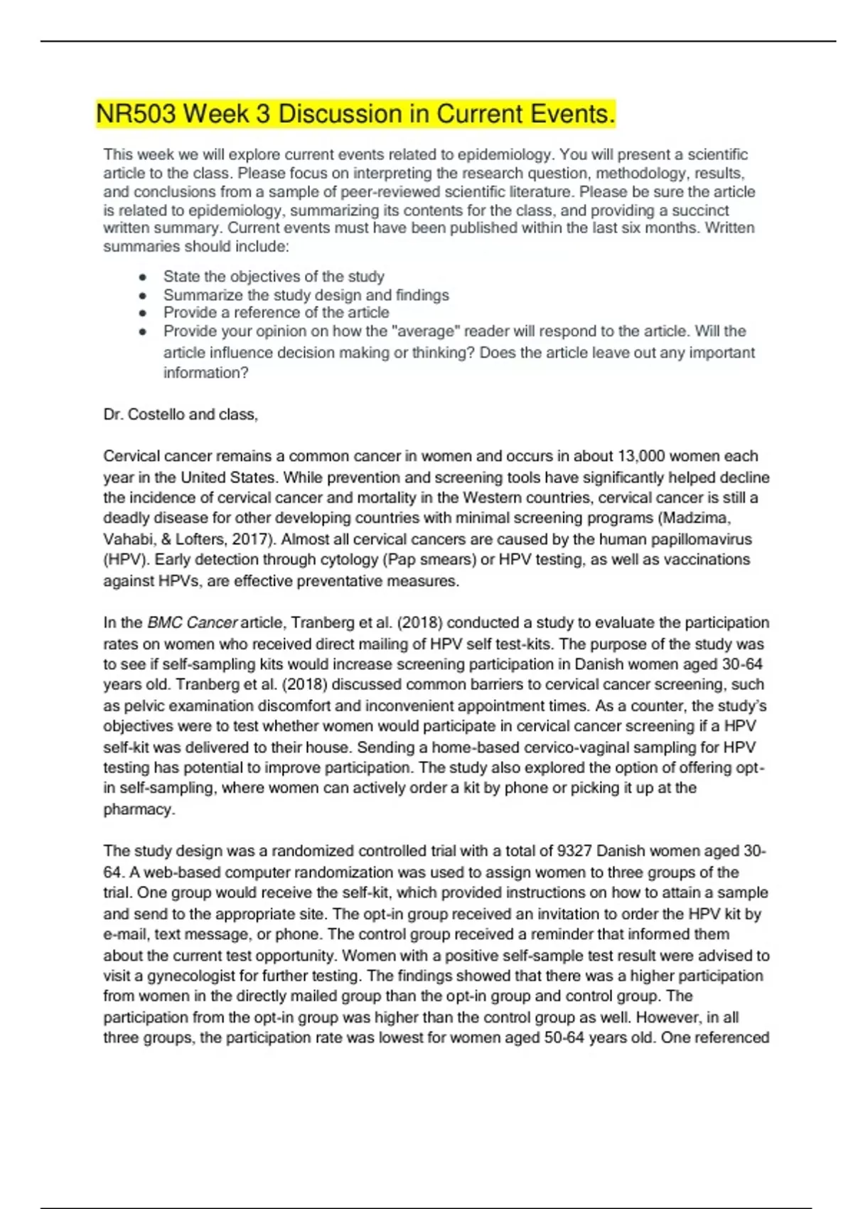 NR503 Week 3 Discussion in Current Events(LATEST UPDATED 2023 COMPLETE SOLUTION GUIDE)