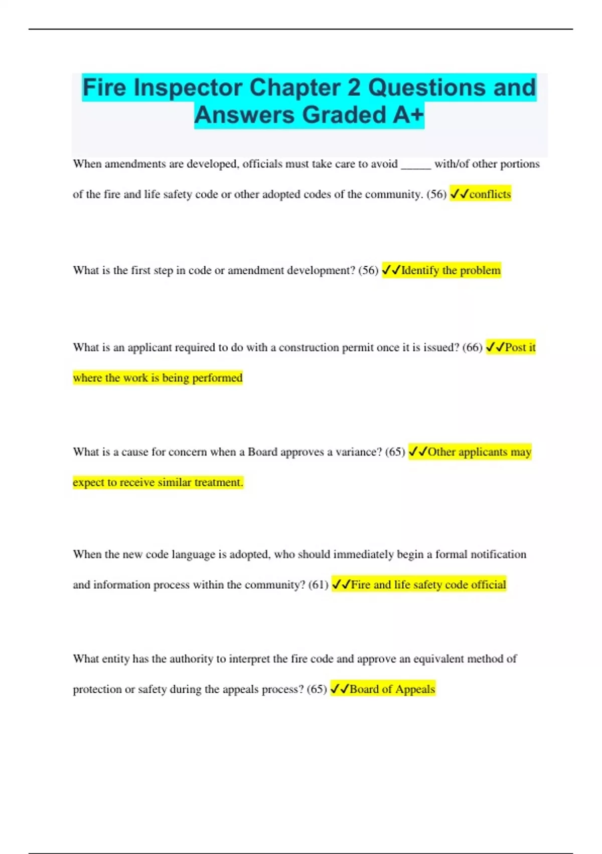Fire Inspector Chapter 2 Questions and Answers Graded A+