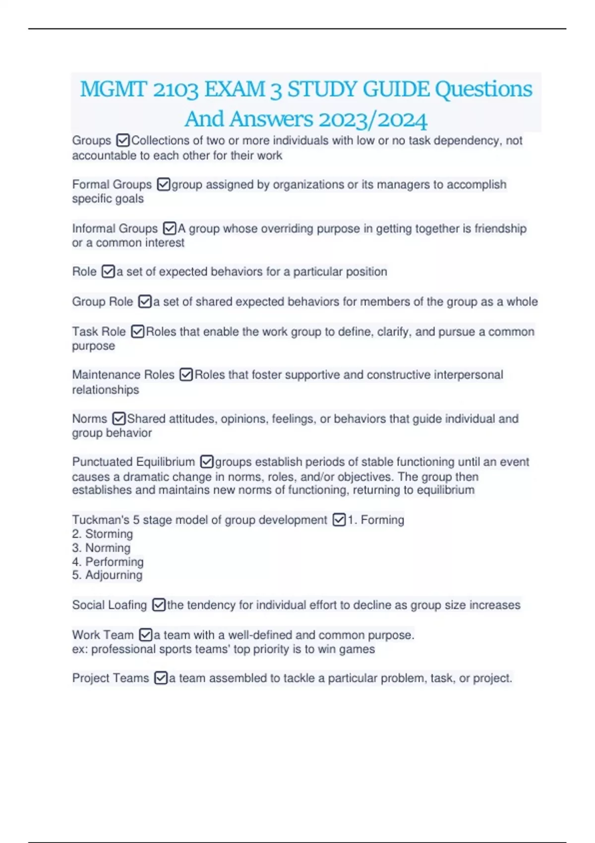 MGMT 2103 EXAM 3 STUDY GUIDE Questions And Answers 2023/2024 MGMT 2103 EXAM 3 STUDY GUIDE Questions And Answers 2023/2024