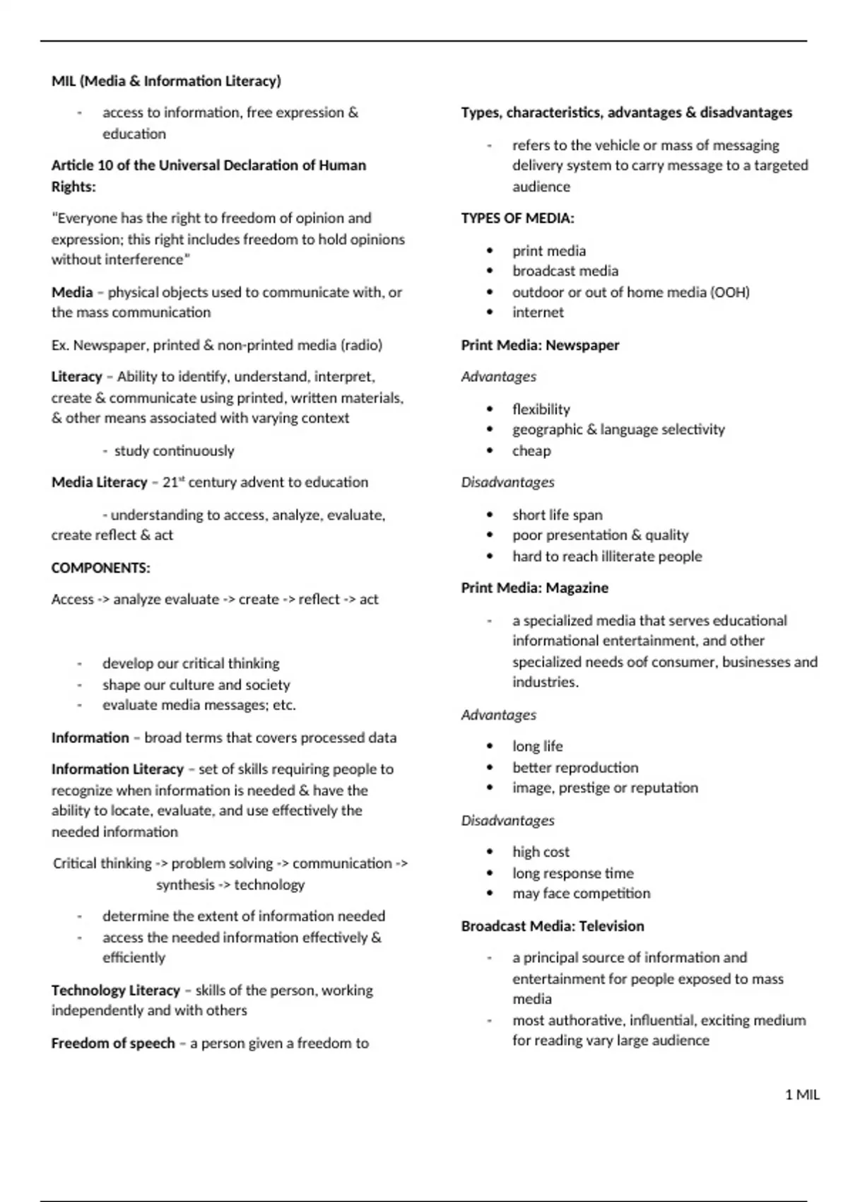 “Everyone has the right to freedom of opinion and TYPES OF MEDIA: