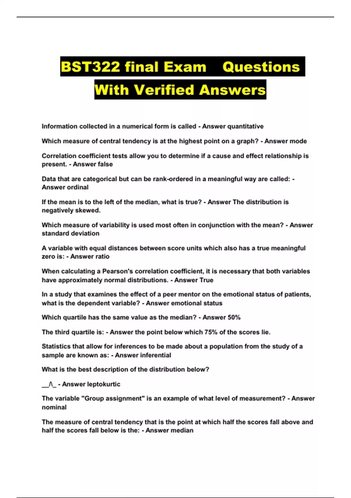 BST322 final Exam Questions With Verified Answers