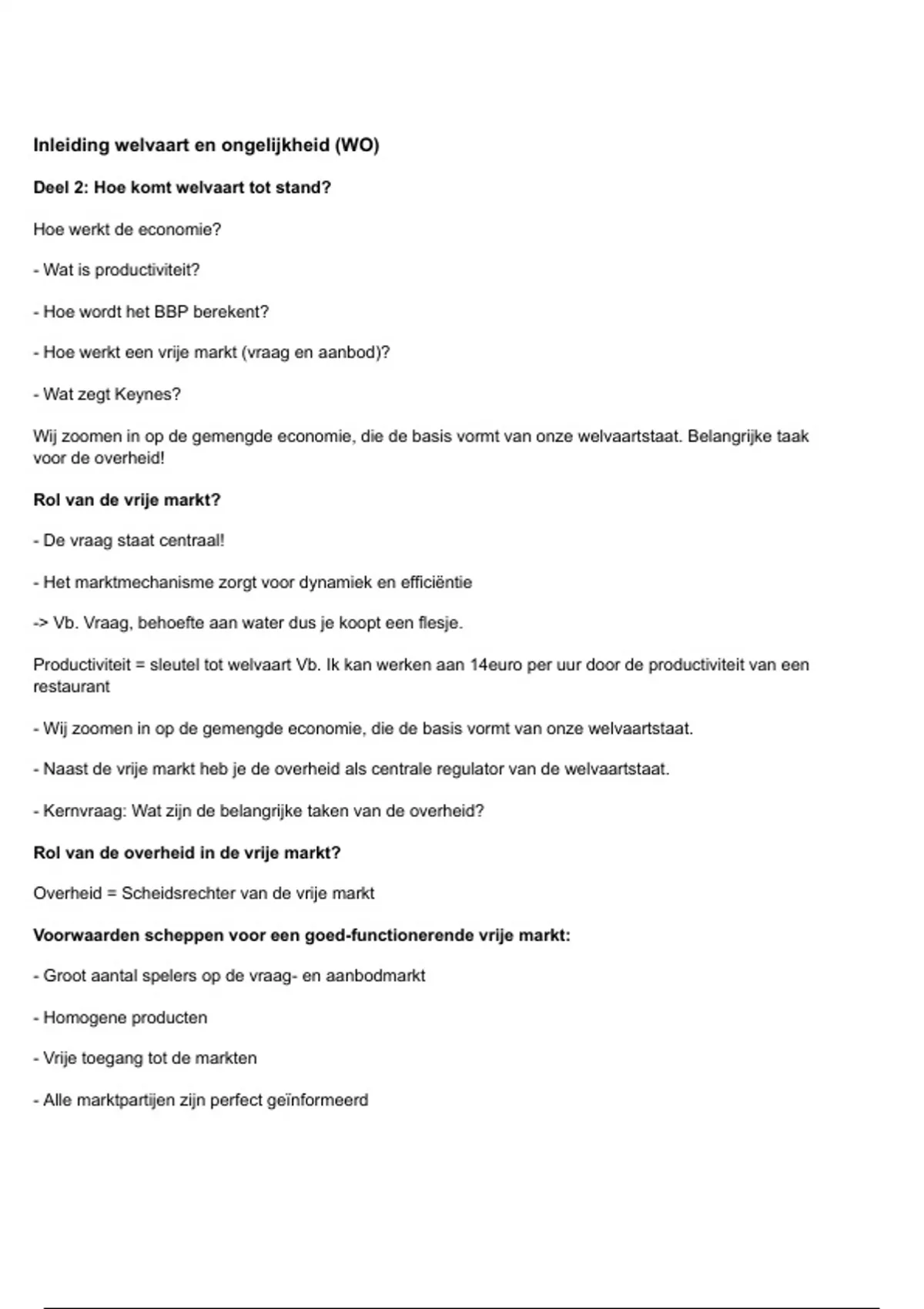 - Naast de vrije markt heb je de overheid als centrale regulator van de welvaartstaat.