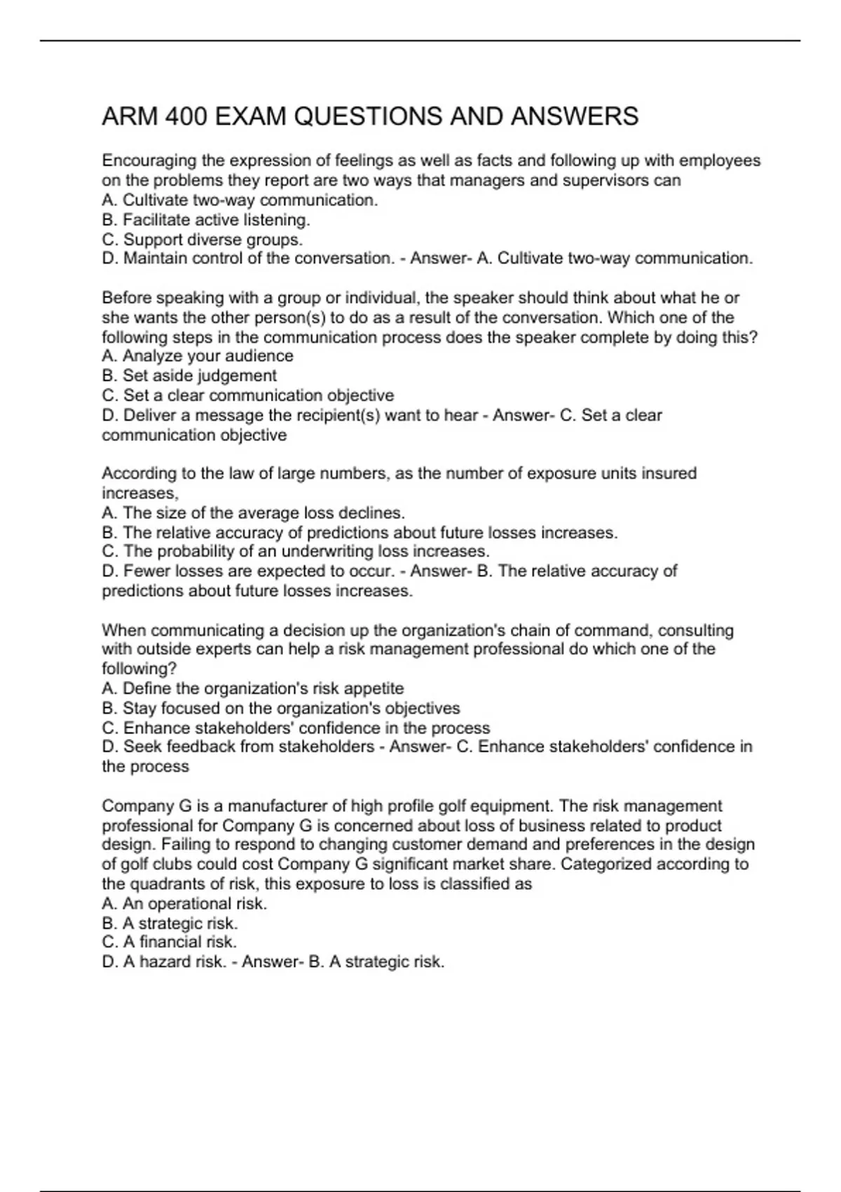 ARM 400 EXAM QUESTIONS AND ANSWERS