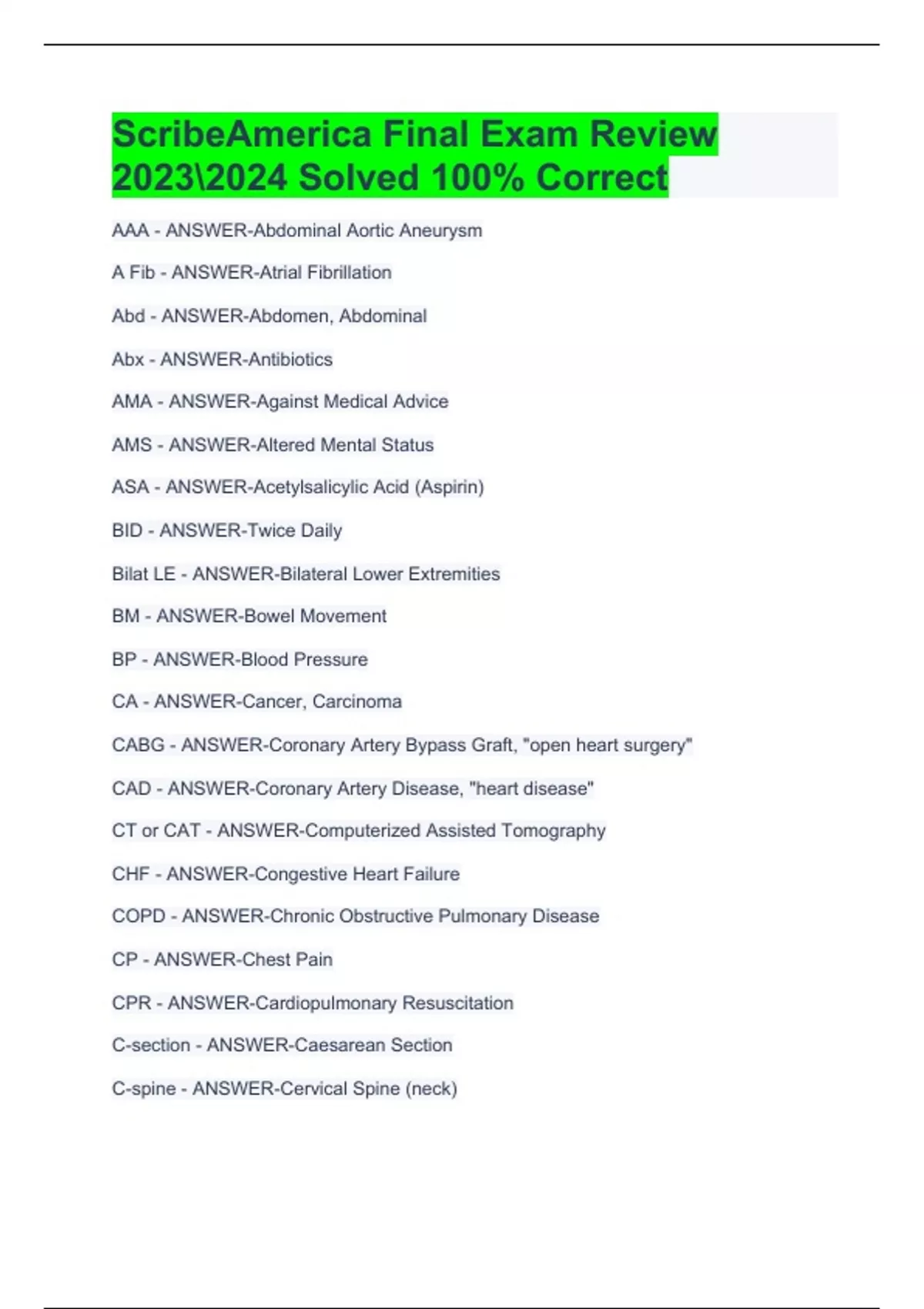 ScribeAmerica Final Exam Review Solved 100% Correct
