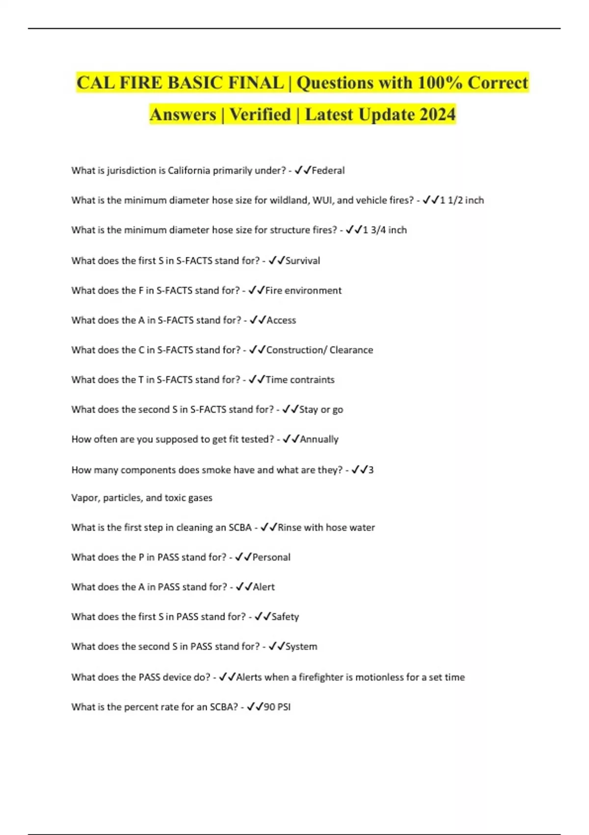 CAL FIRE BASIC FINAL | Questions with 100% Correct Answers | Verified | Latest Update 2024