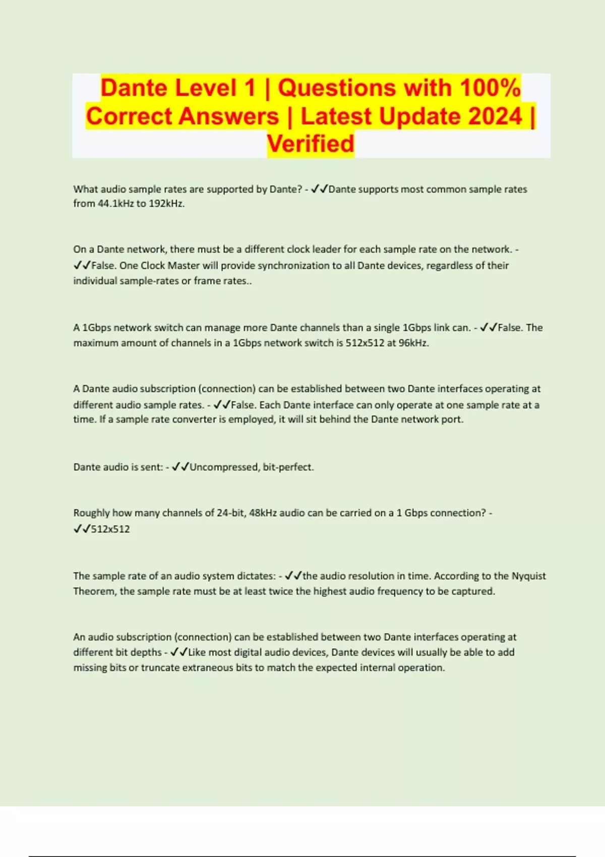 Dante Level 1 | Questions with 100% Correct Answers | Latest Update 2024 | Verified
