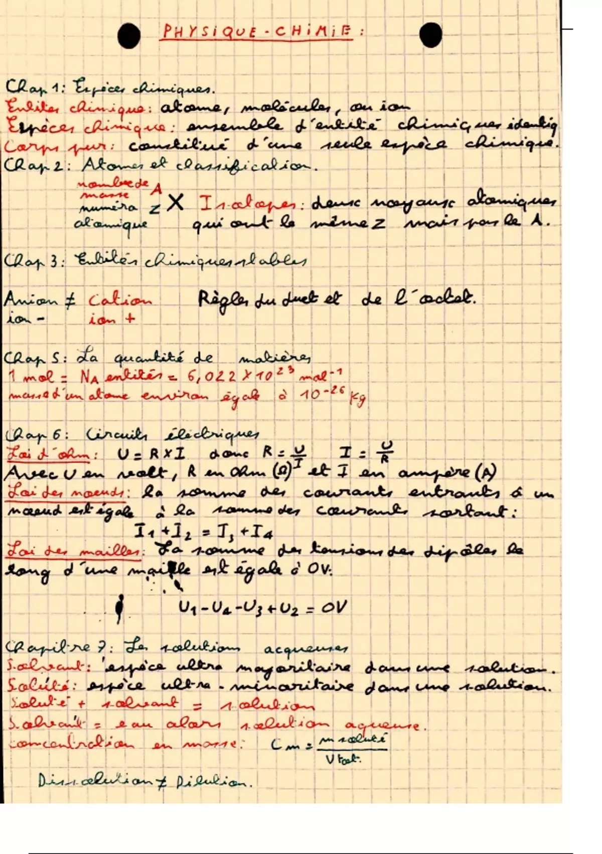 Résumé condensé de chaque chapitre de Physique-Chimie de seconde