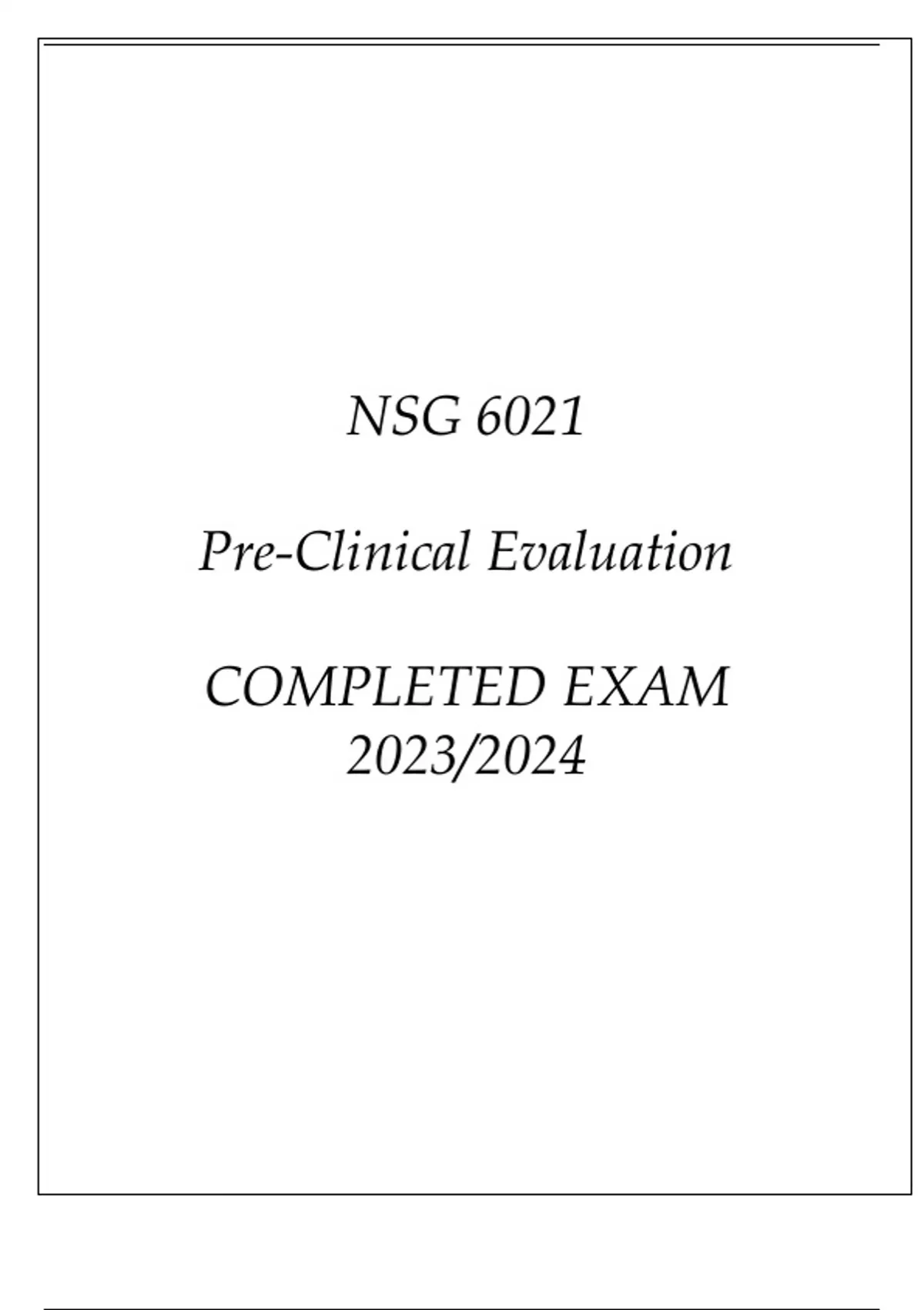 NSG 6021 PRE-CLINICAL EVALUATION COMPLETED EXAM