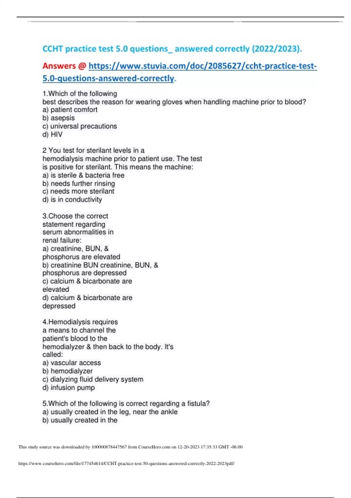 CCHT practice test 5.0 questions_ answered correctly ()