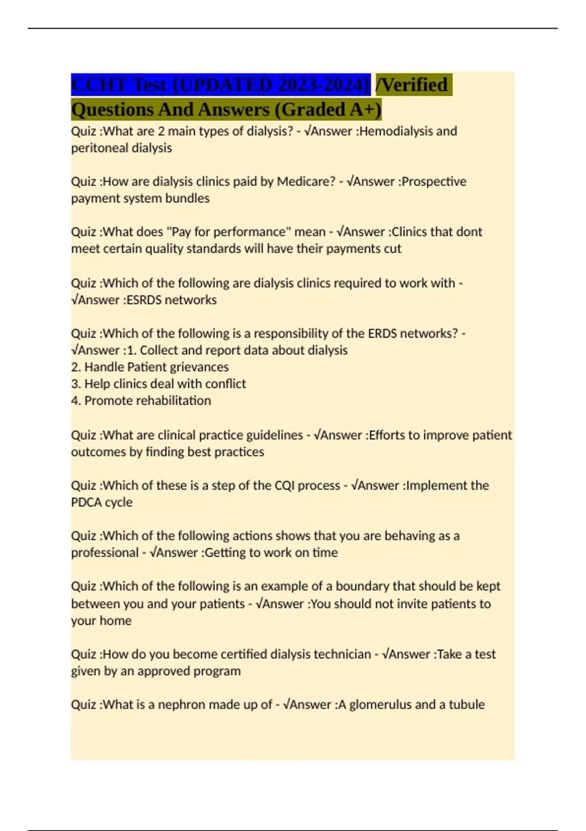 CCHT Test {UPDATED 2023-2024} /Verified