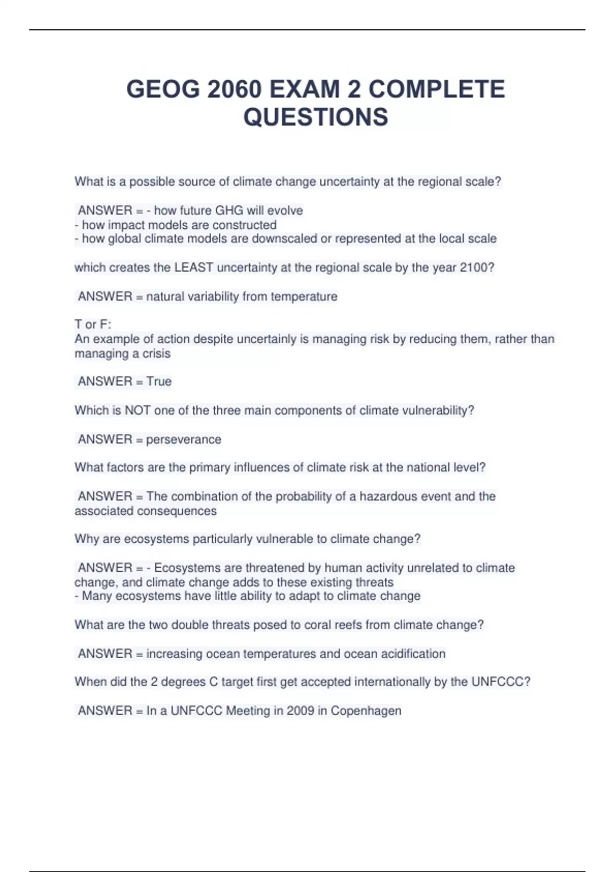 GEOG 2060 EXAM 2 COMPLETE QUESTIONS AND ANSWERS