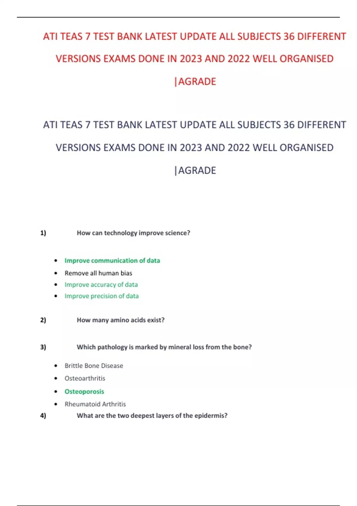 ATI TEAS 7 TEST BANK LATEST UPDATE ALL SUBJECTS 36 DIFFERENT VERSIONS EXAMS DONE IN 2023 AND 2022 WELL ORGANISED |AGRADE